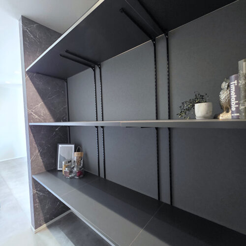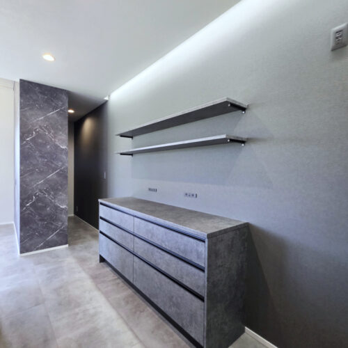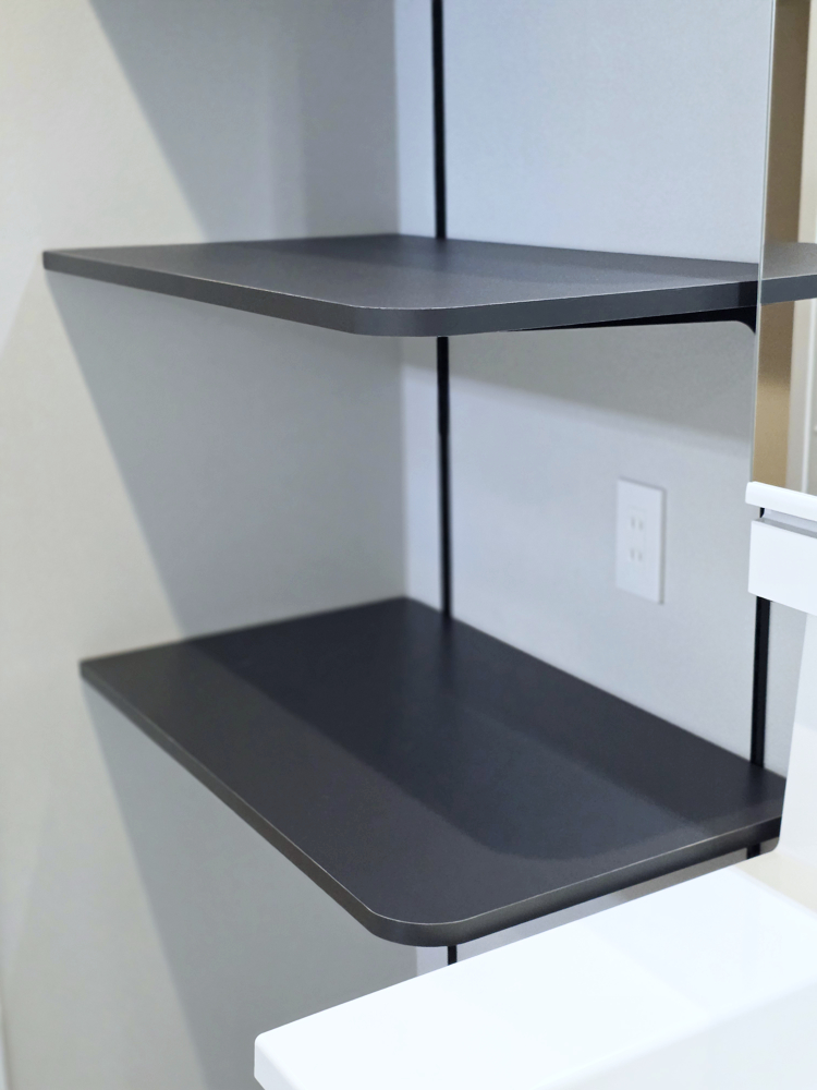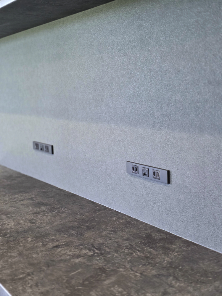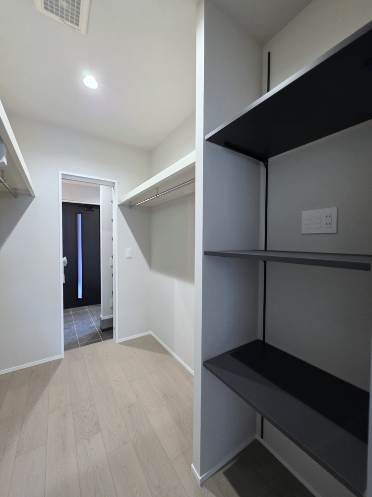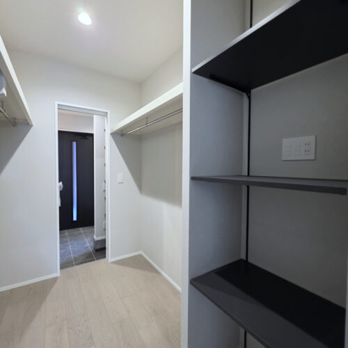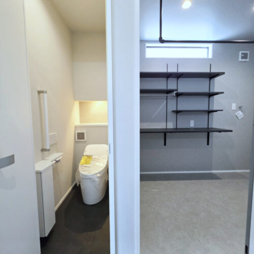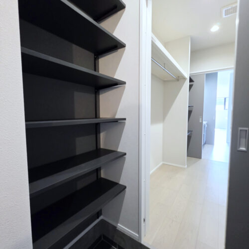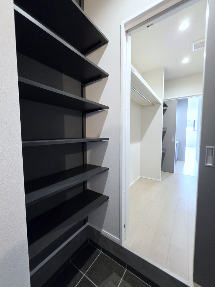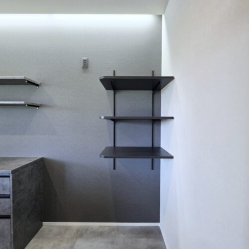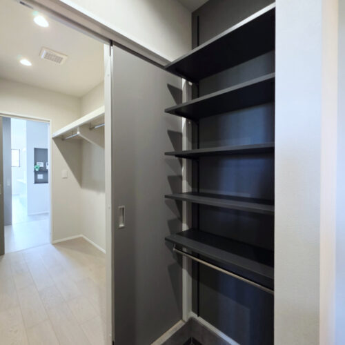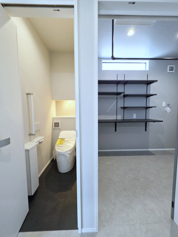 普段は見えないけど、必要な時はすぐに出せる!そんなマルチストレージ。片付けも映えも意識できる!気持ちいいキッチンになりそうな背面収納空間!冷凍庫を置けたり、スイッチ類をニッチに集約させたり、コンセントの場所などにも注目してほしいです。