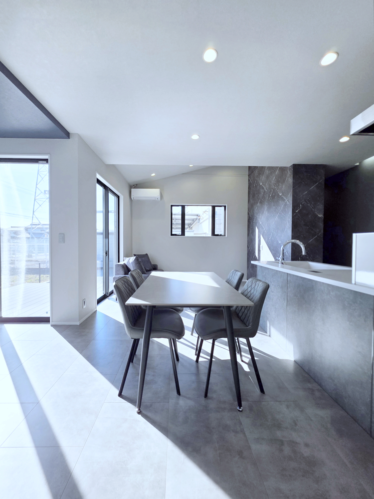 弊社の建売住宅は、リビングエアコン、全室LED照明、ソファ、ダイニングセット、スツールがついています!快適な生活を手軽に始められます。