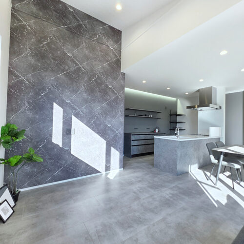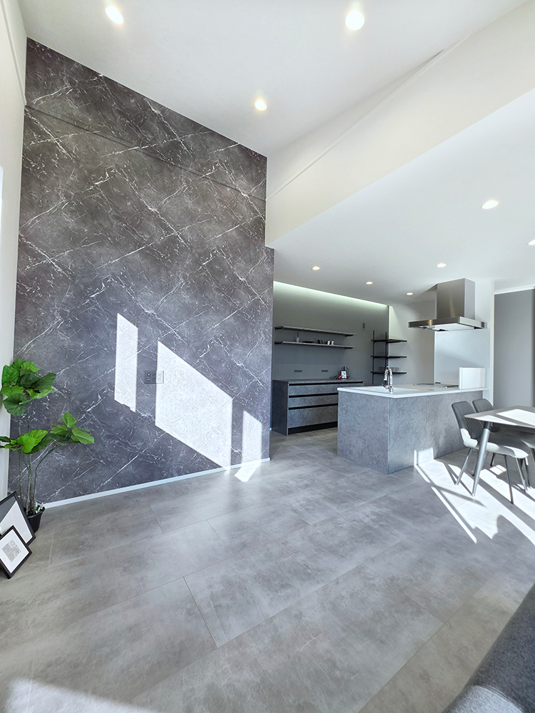 ・イケメングレーのモルタル調フローリングを採用!