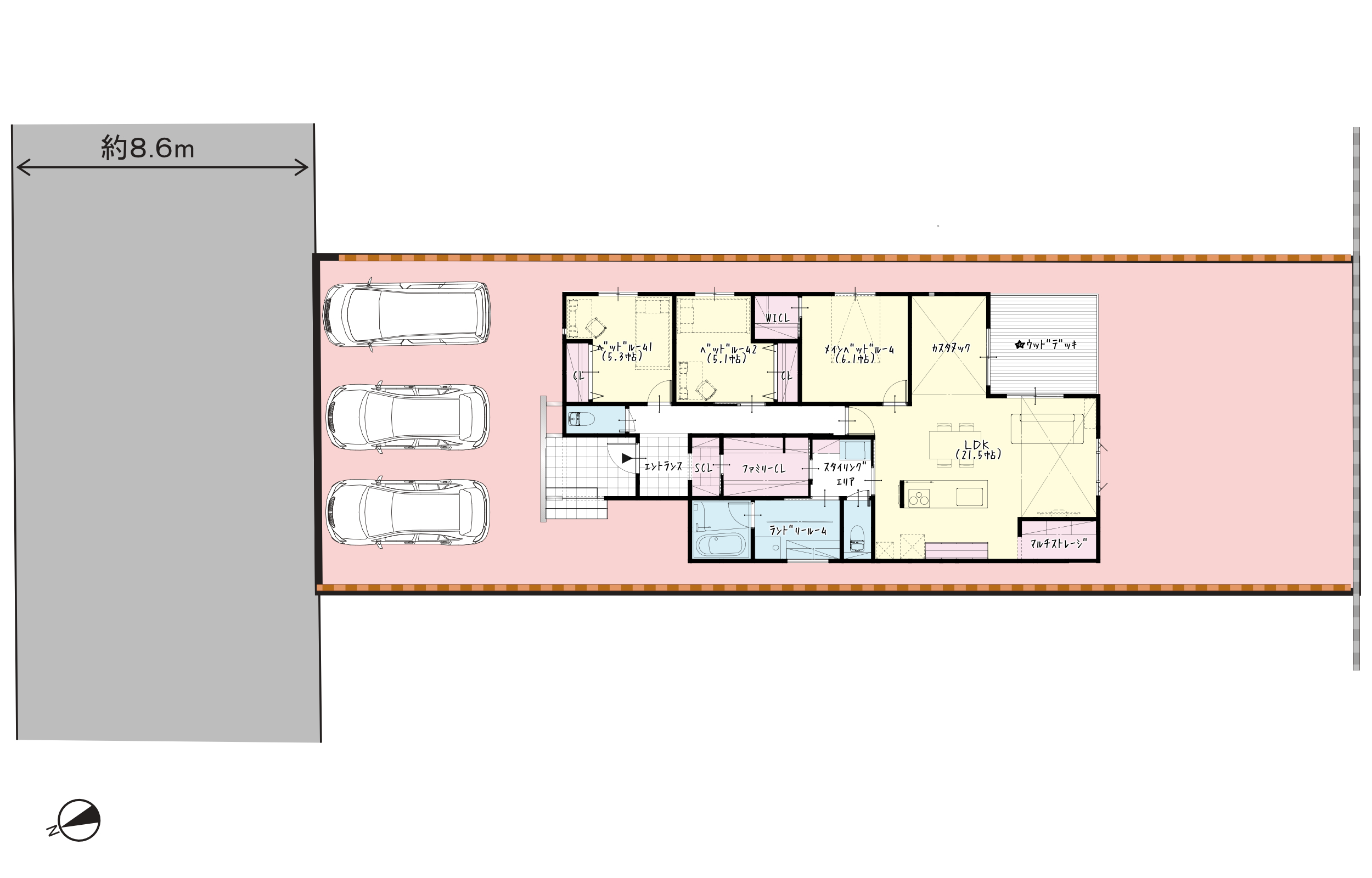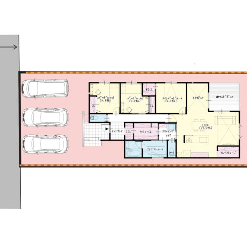 ベストの平屋!並列3台駐車可能!LDK21帖以上!平屋でも開放的な空間に、収納スペースに困らない間取り。