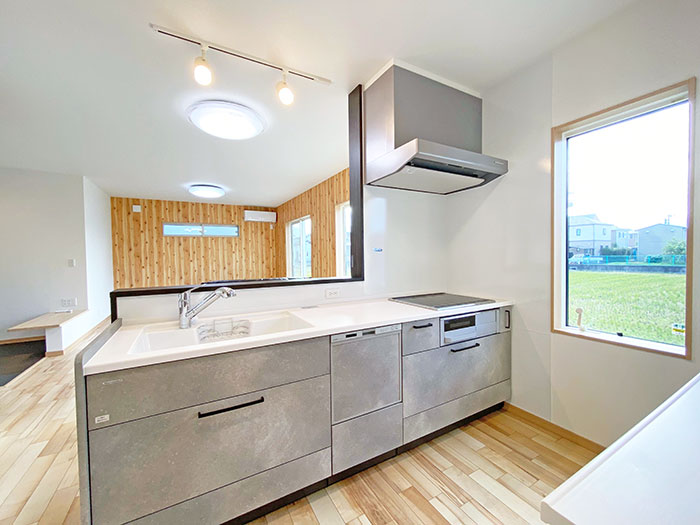 《外構付き物件》ランドリーで家事ができるように家事スペースを設けたお家になります。ランドリー収納も豊富です。また1階に外付けサンルームがついているので1階で家事を完結させたい!って方におすすめです。