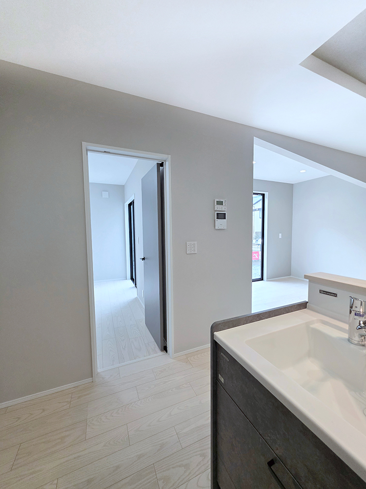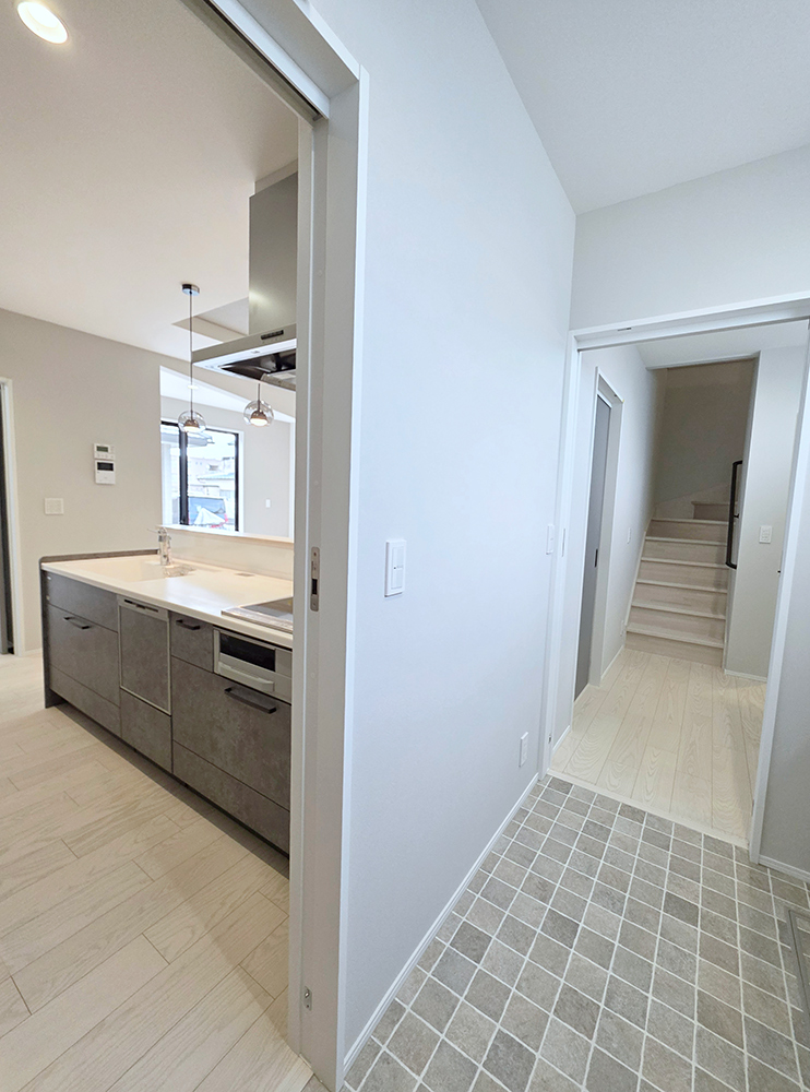 ご飯の準備をしながら、家族の様子を確認できたり、洗濯物の片づけをすることができます。