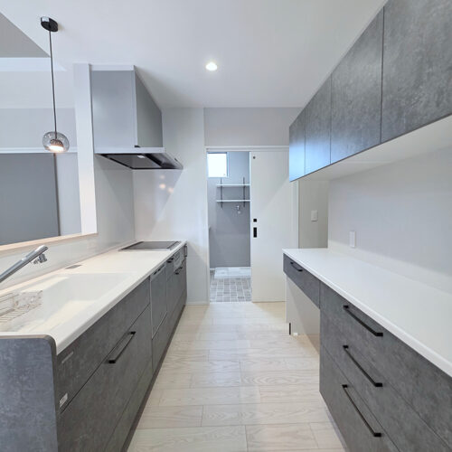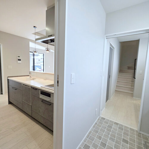 ランドリーへのアクセスはキッチン・スタイリングエリアからの2方向。