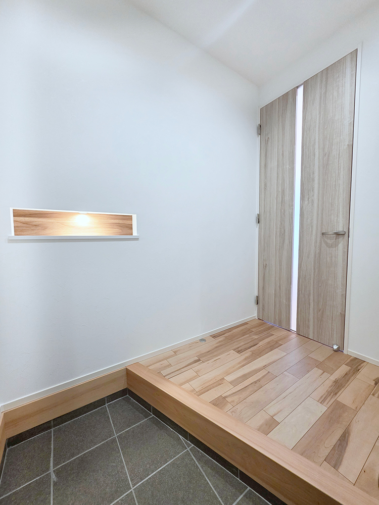 玄関ポーチには宅配BOXなど置き配が可能なスペースを計画致しました。屋根に覆われているので、雨天時にも便利です。