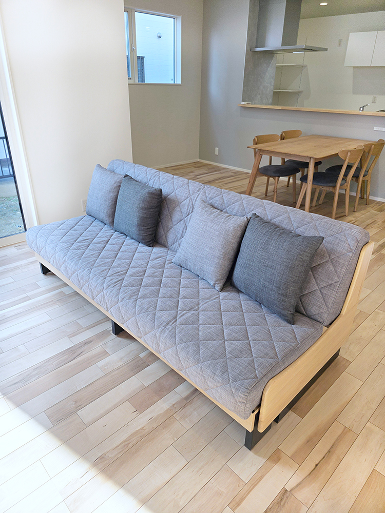 弊社の建売住宅は、リビングエアコン、全室LED照明、ソファ、ダイニングセット、スツールがついています!快適な生活を手軽に始められます。