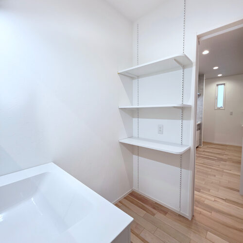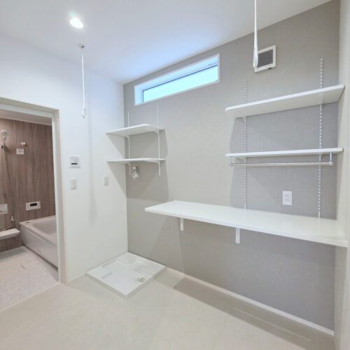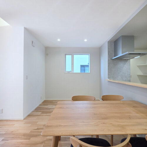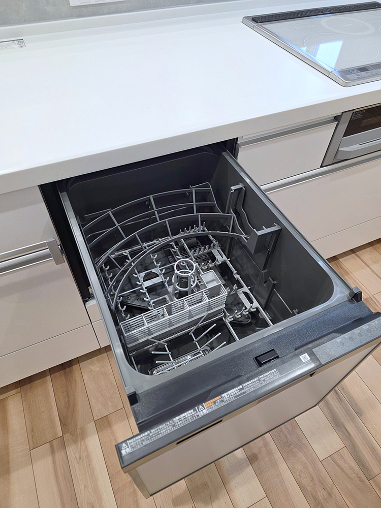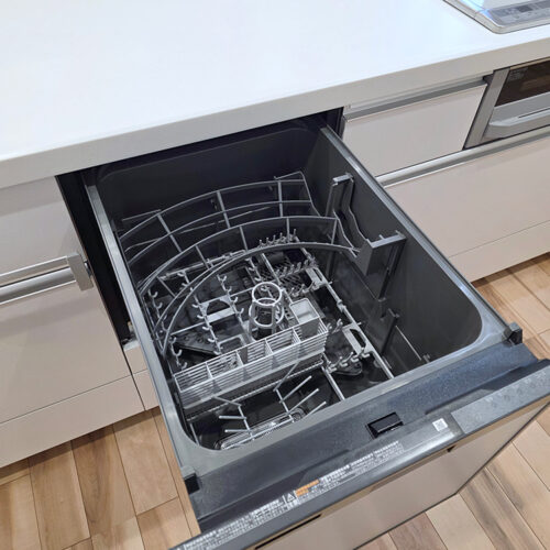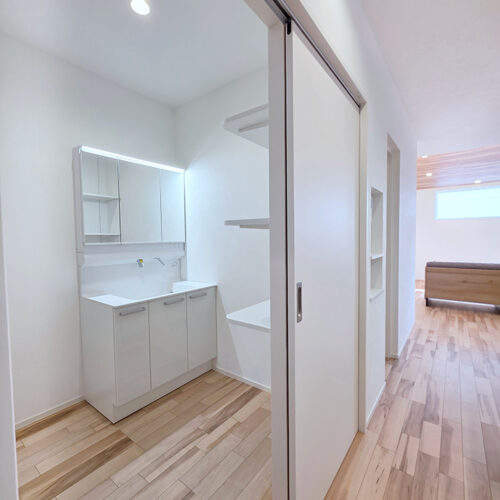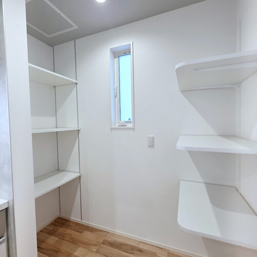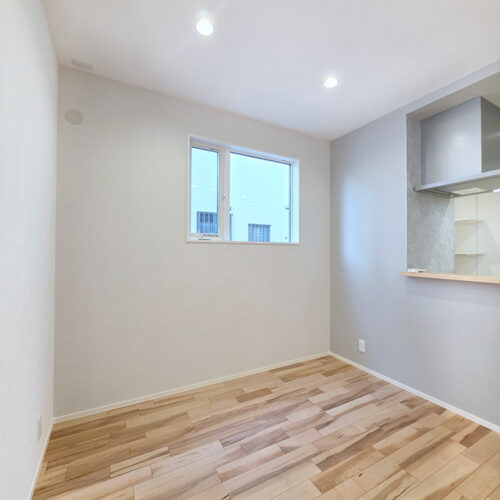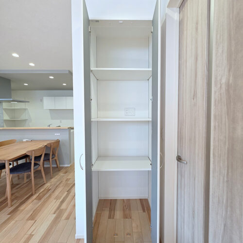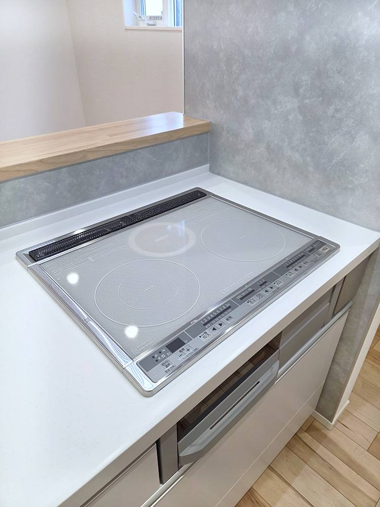 キッチンに立った際に、リビング・ダイニング・カスタヌックで過ごしている家族の様子をうかがえる場所にキッチンを配置しました。キッチン背面にも充分なスペースを確保しています。
