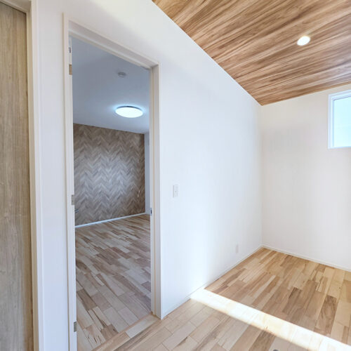 2階は1階に比べてコンパクトにまとめました。ベッドルーム2部屋を南北に配置しています。2部屋にはCLも計画し、1階ですべて完結するようなプランとなっております。