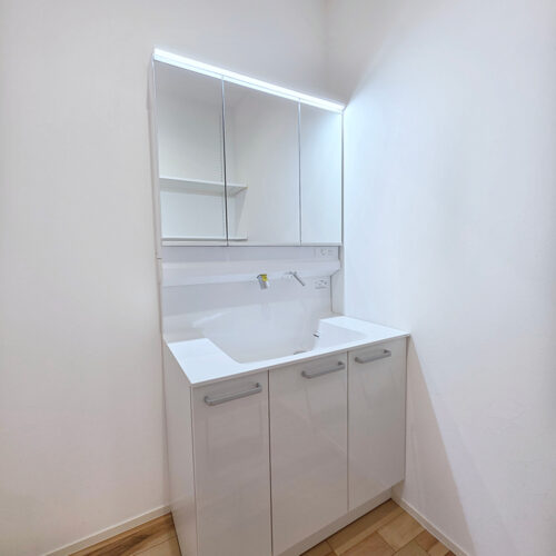 オクターブは、美しさと使いやすさを兼ね備えたデザインが特徴。広い洗面スペースと収納スペース、ワイドなミラーとLED照明、ハンドソープやタオルを置くスペースなど、快適な空間を演出します。