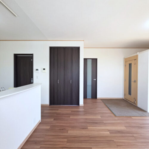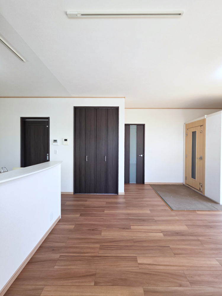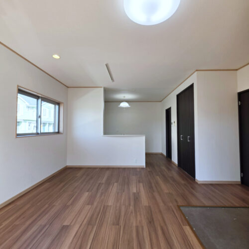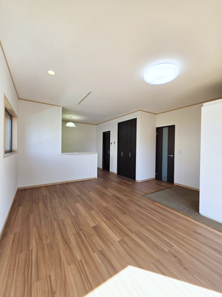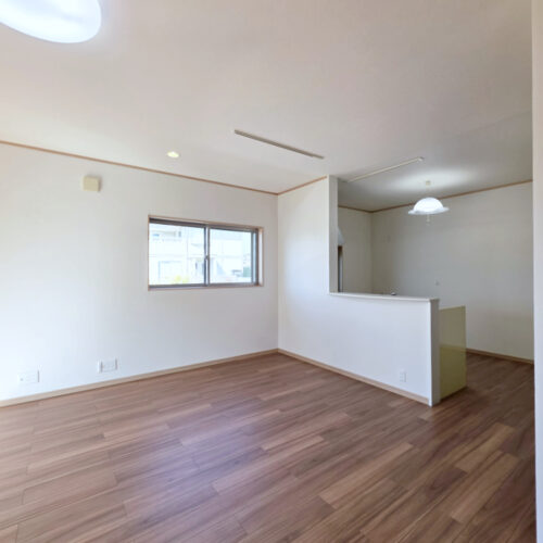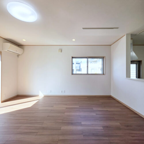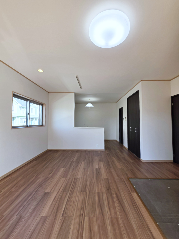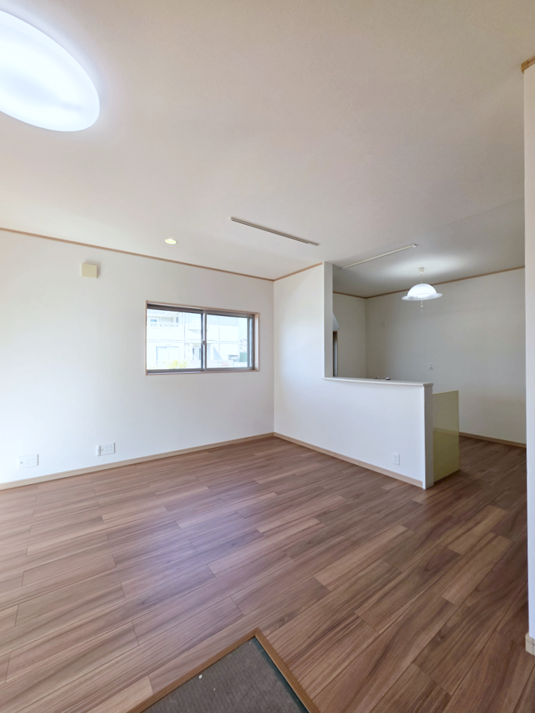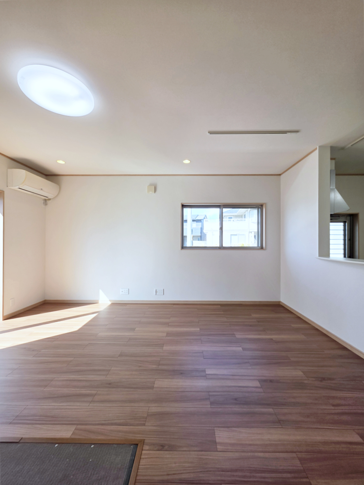明るいLDK: リビングの奥まで自然光が差し込み、明るく開放的な空間で過ごせます。