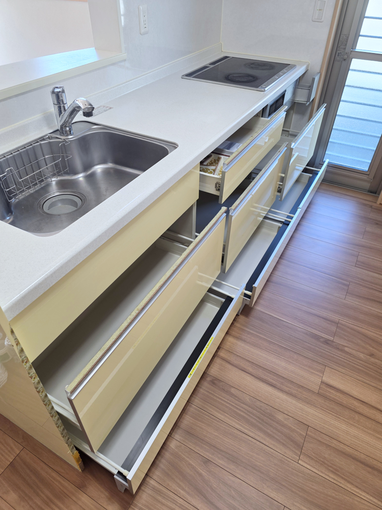オール電化・IH: お手入れが楽で火を使わない安心感のあるキッチンです。