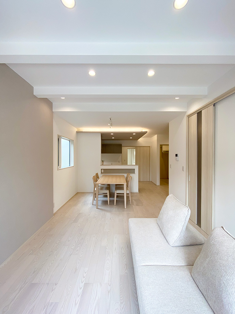 イクタの抗ウイルスフローリング採用。マットな風合いのラスティック塗装に、消臭、ウィルス、抗菌、VOC低減効果をプラスした、安心、安全、健康かつ、天然木ツキ板のフローリングです。