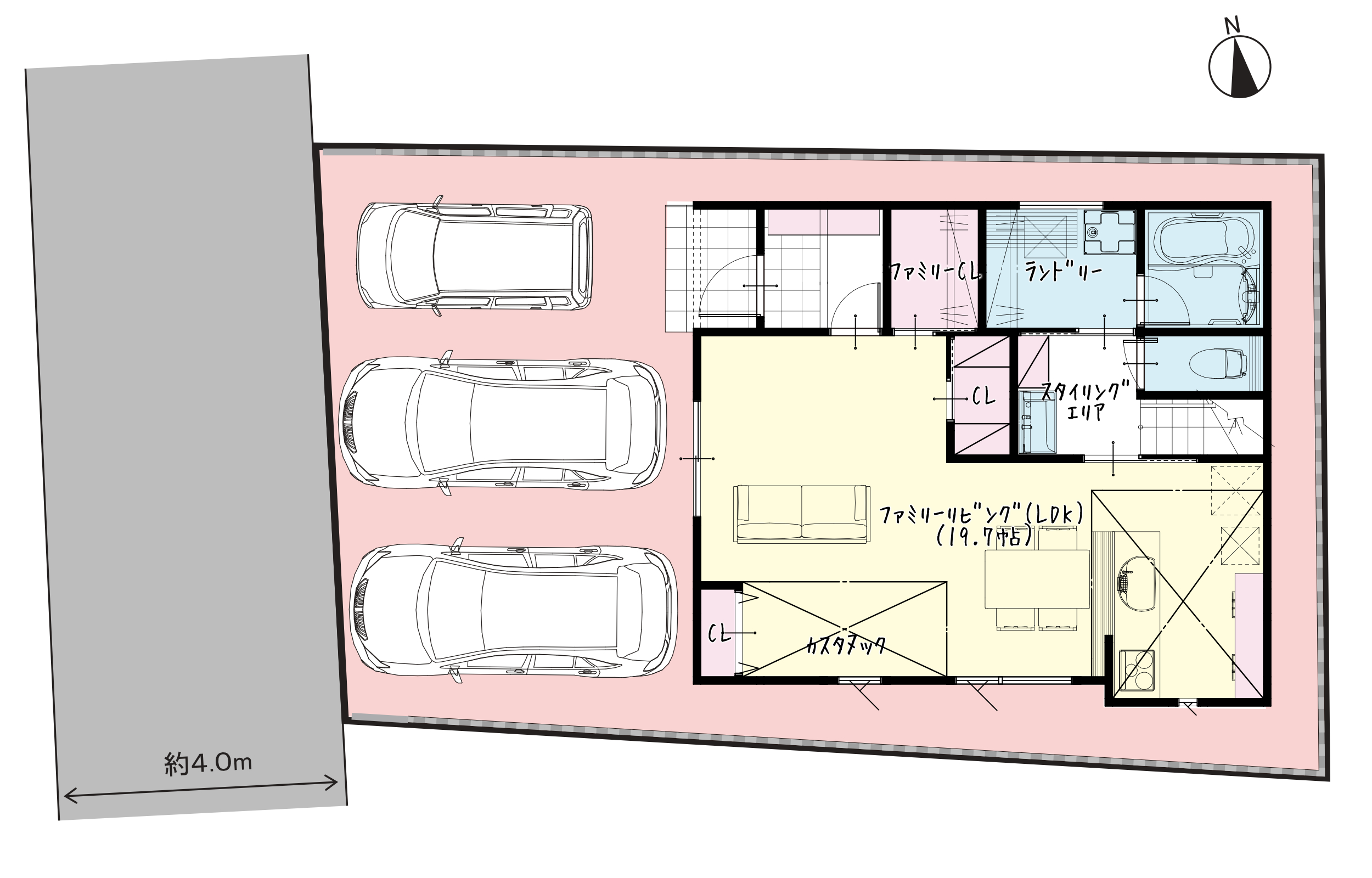 並列3台駐車可能!機能的にゾーニングされたな3LDKの住まい!