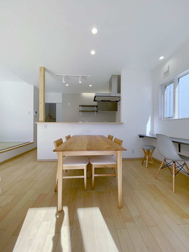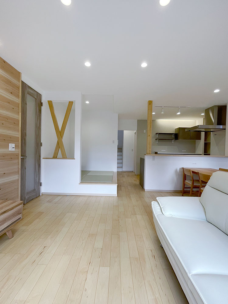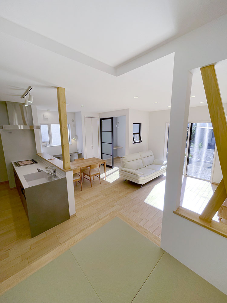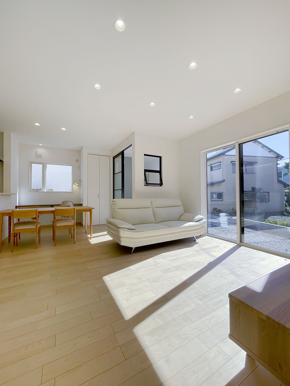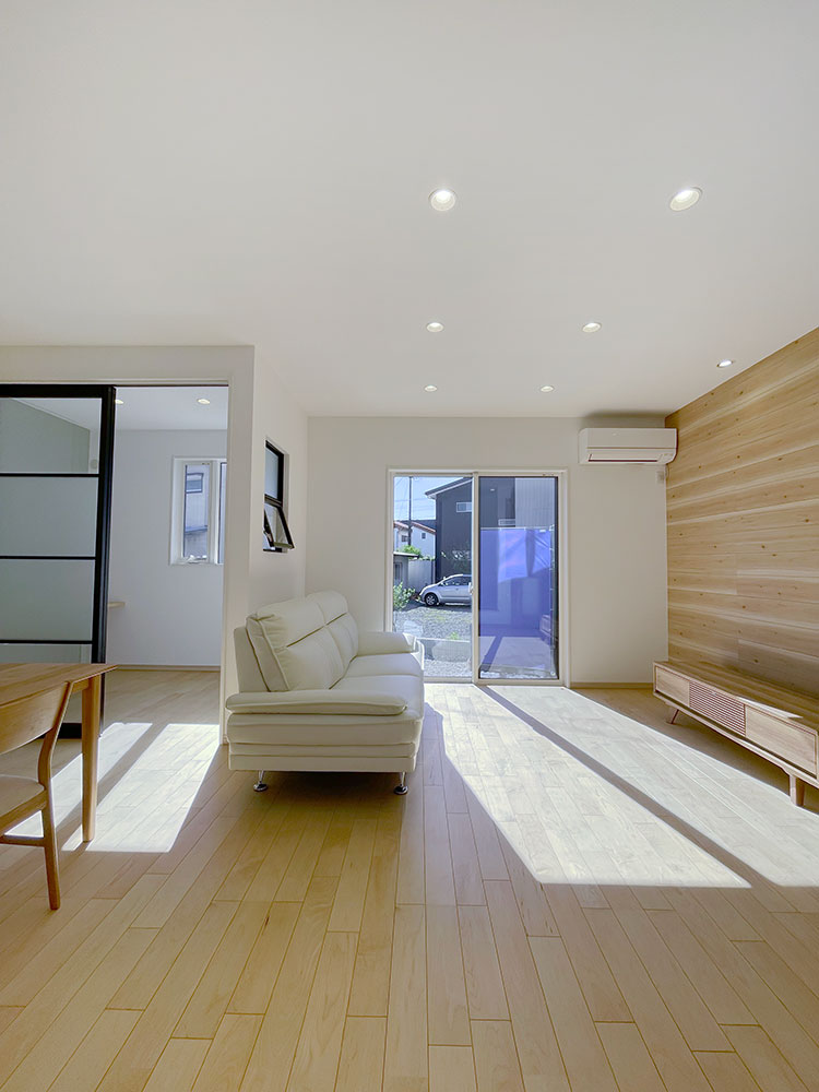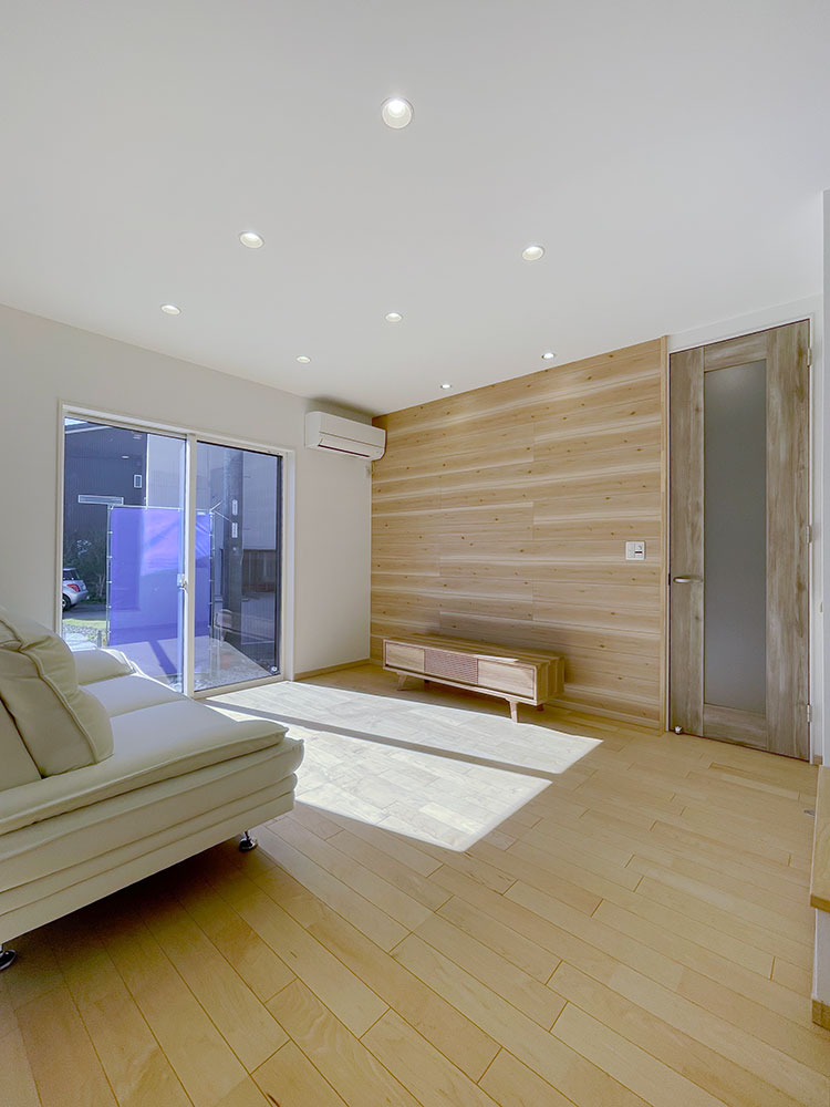 朝日ウッドテックの抗ウイルスフローリング採用。99%以上の抗菌・抗ウイルス効果で繁殖を抑制し、傷や汚れにも強く、お手入れも簡単です。
