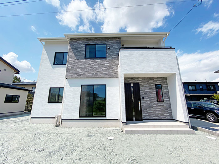 目的にあわせて最短で向かえるようにエントランスから2つの動線+回遊動線を採用したストレスフリーなお家になります。どこにいても家族の様子が見渡せるのがポイントです。