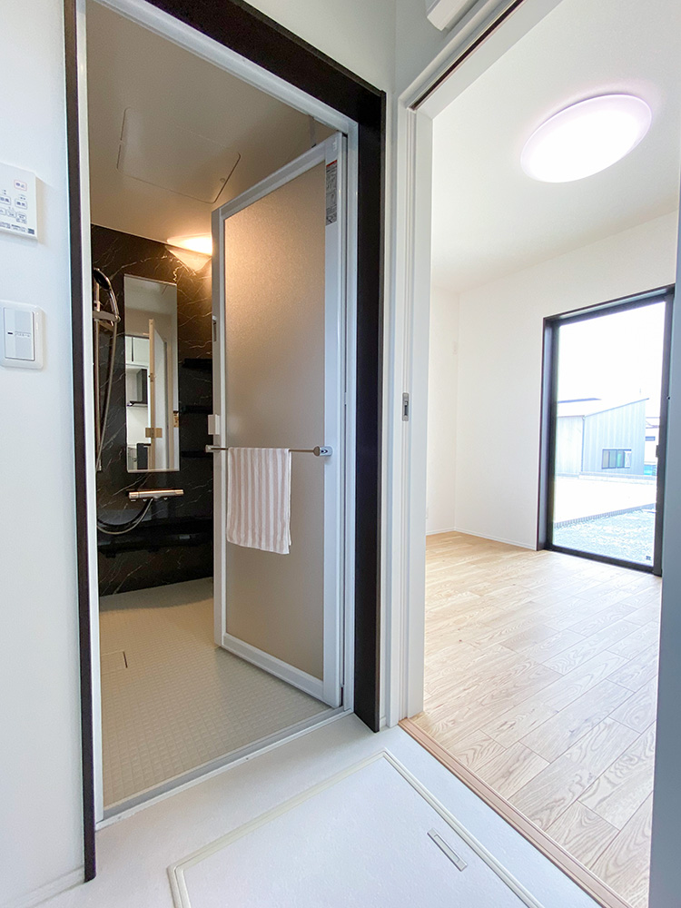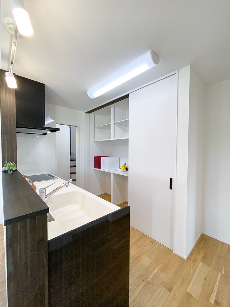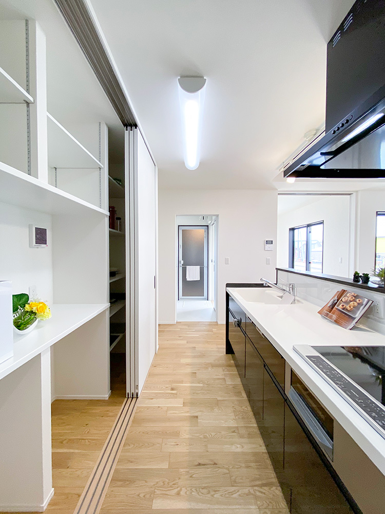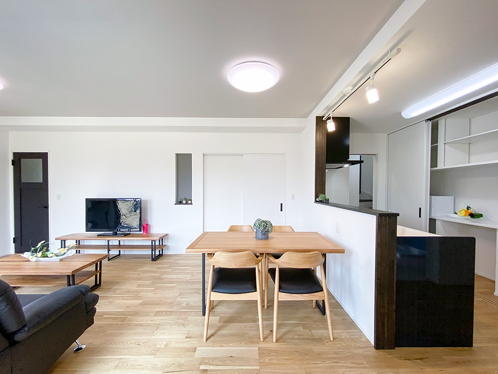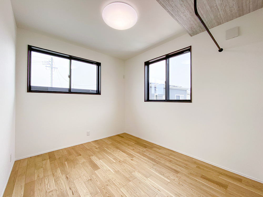 サンルームとウッドデッキ、ちょこっと和コーナーがついた欲張り住宅!1階での生活を充実させたい!という方におすすめの住まいです。敷地が広いので、玄関外で遊べるのも魅力です。