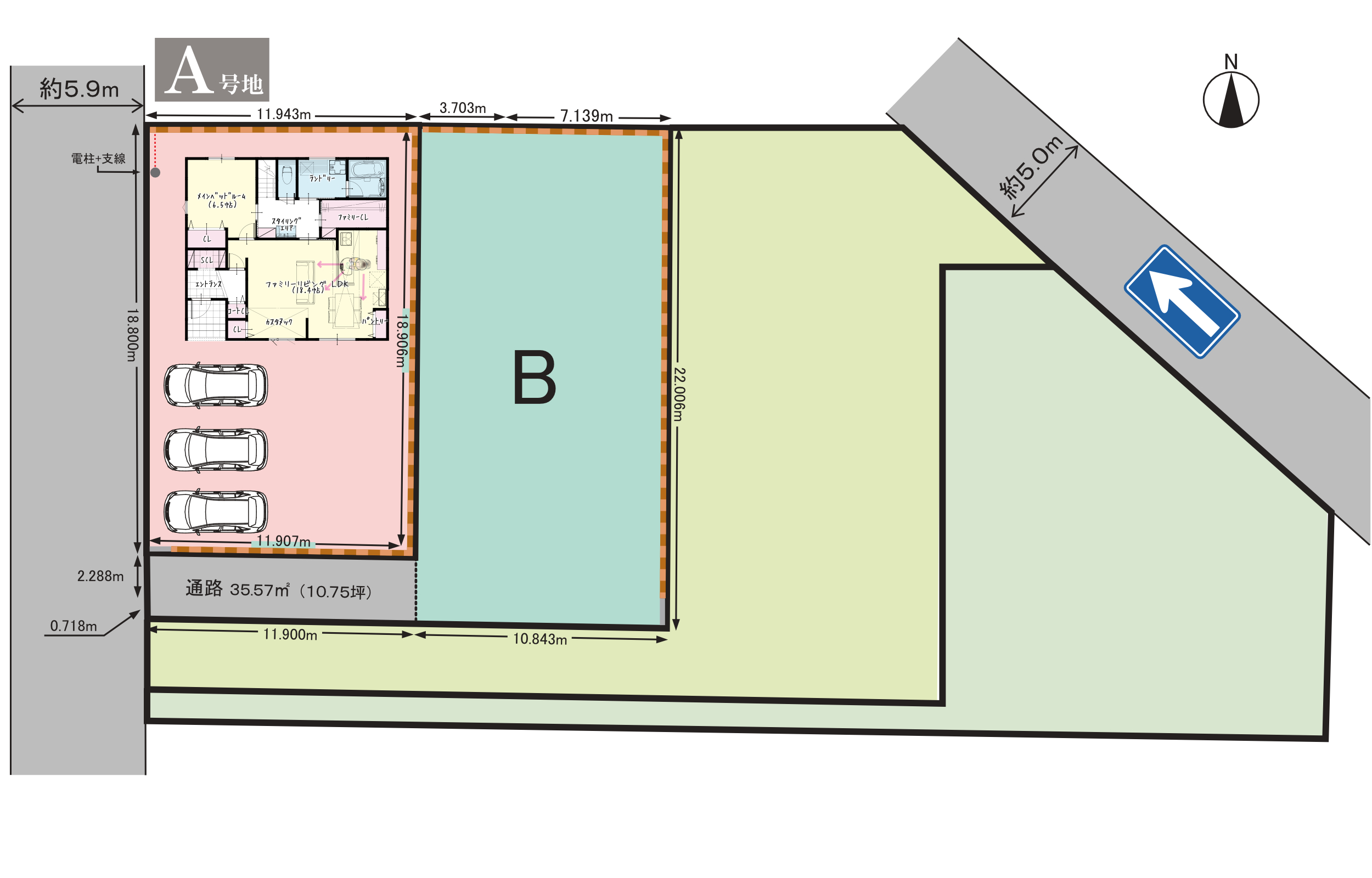 18.4帖 の広々とした ファミリーリビング・LDK が、家族団らんの中心となります。