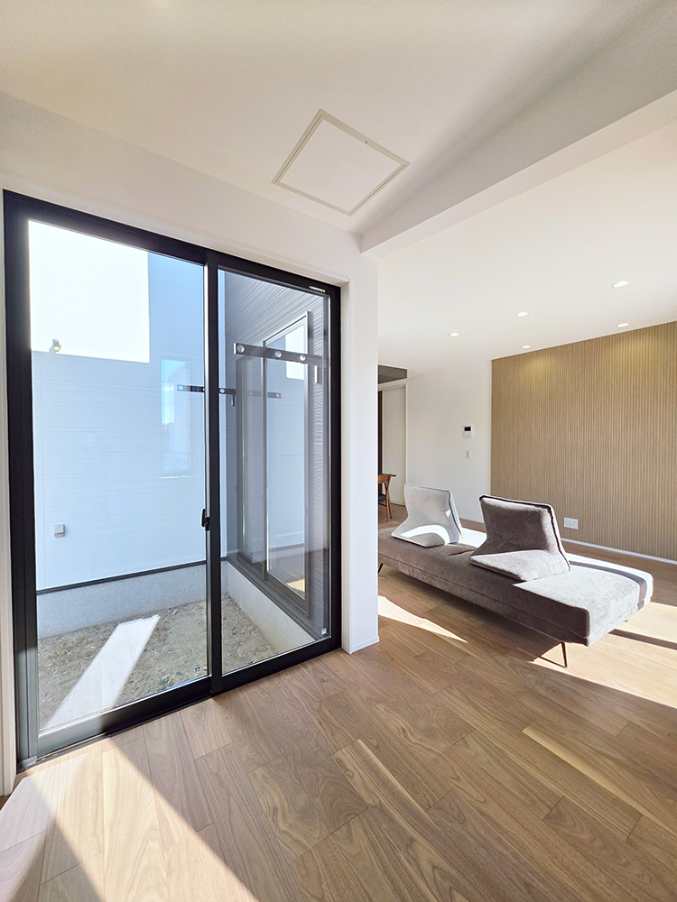 西側中庭にはシンボルツリーを植えたり、ウッドデッキやタイルデッキを設けてアウトドアリビングとしても活用できます。