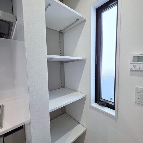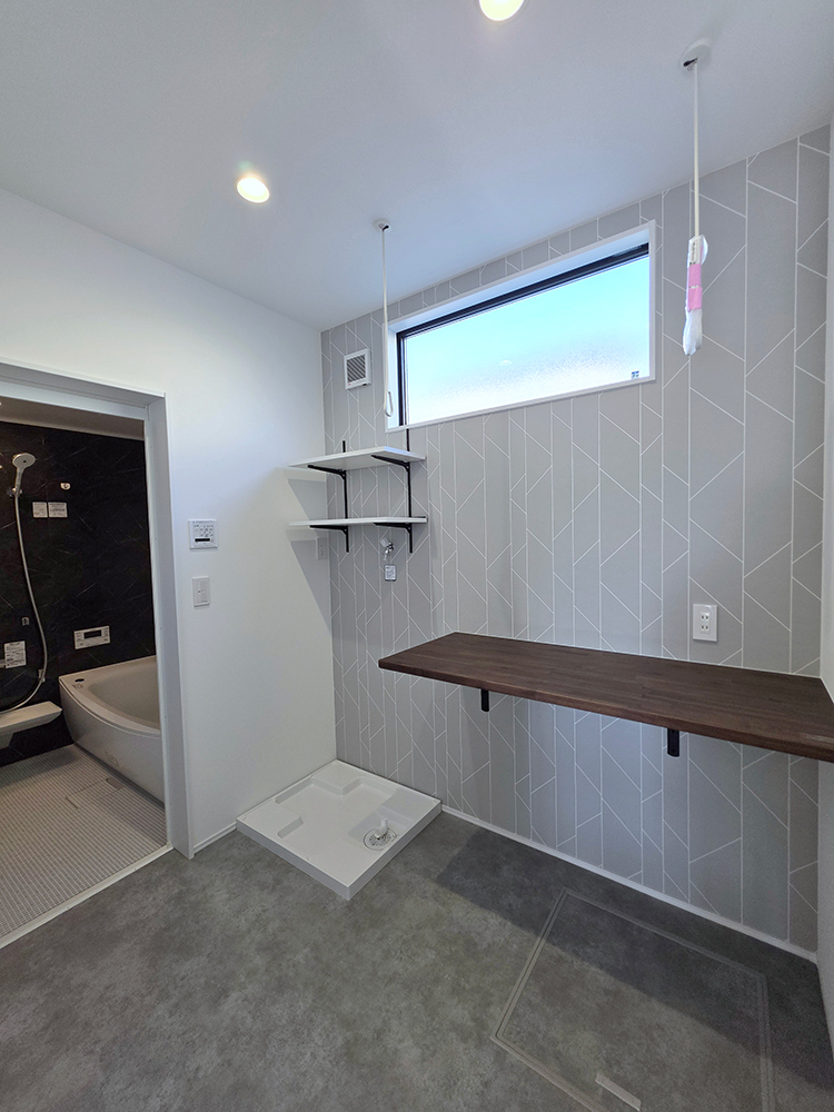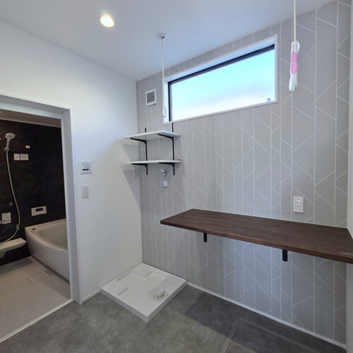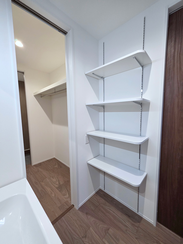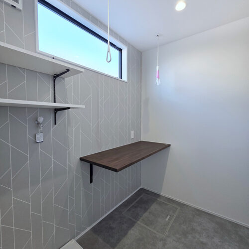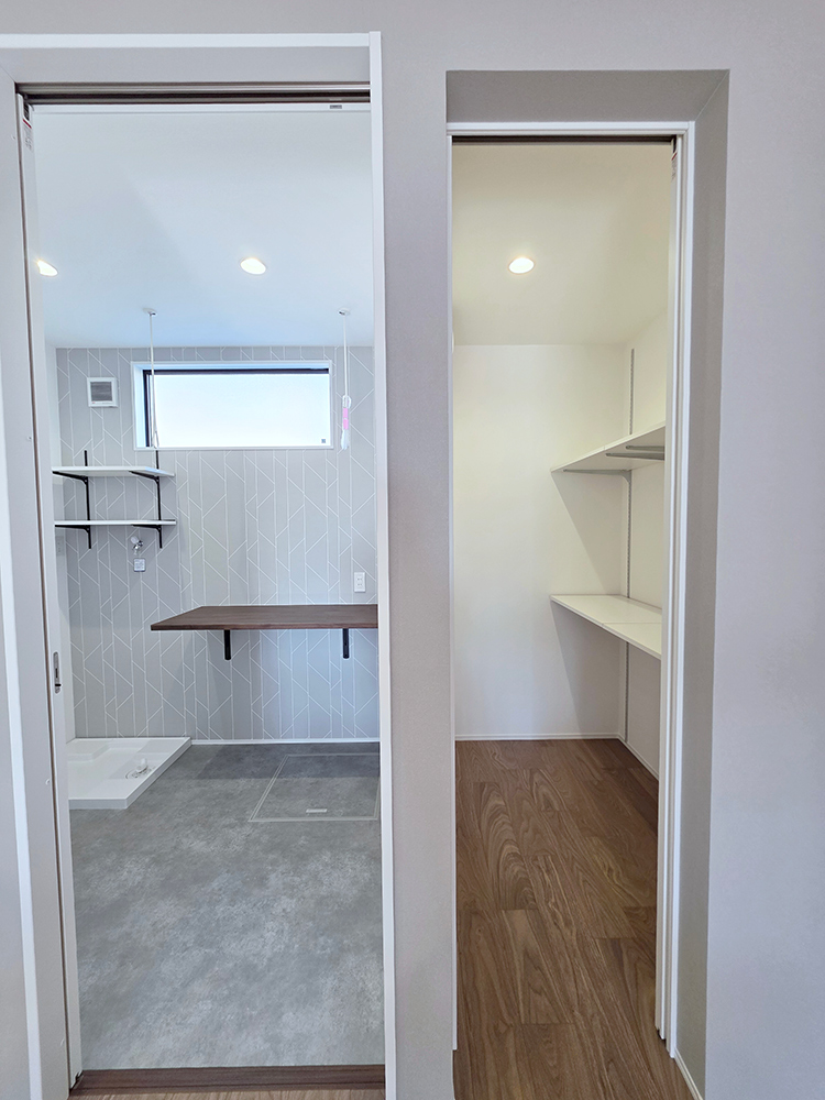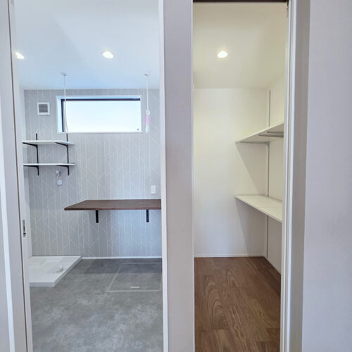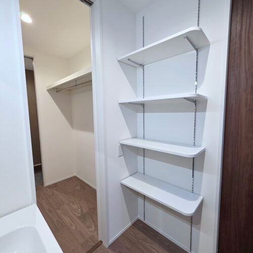 ランドリースペースにも収納があり、洗剤などを置くのに便利です。