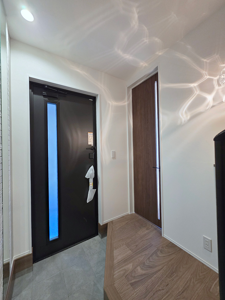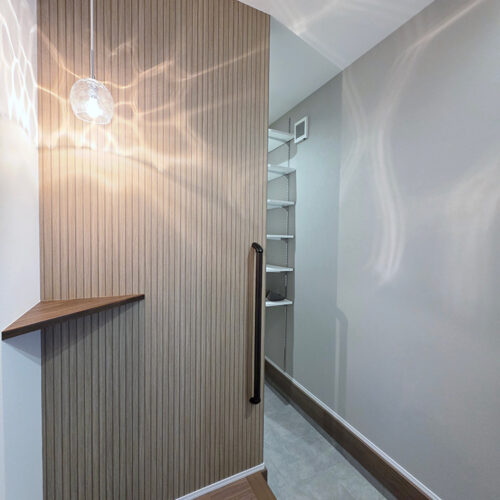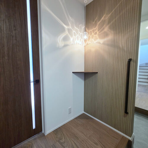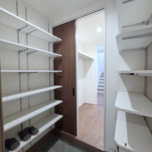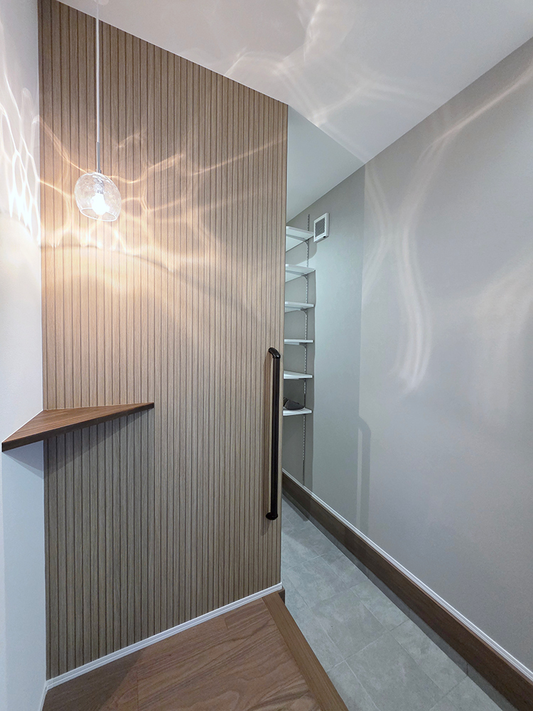 玄関から収納スペースを直線的に移動しスタイリングエリアで手洗いができます。外出準備や帰宅後の片付けに便利です。