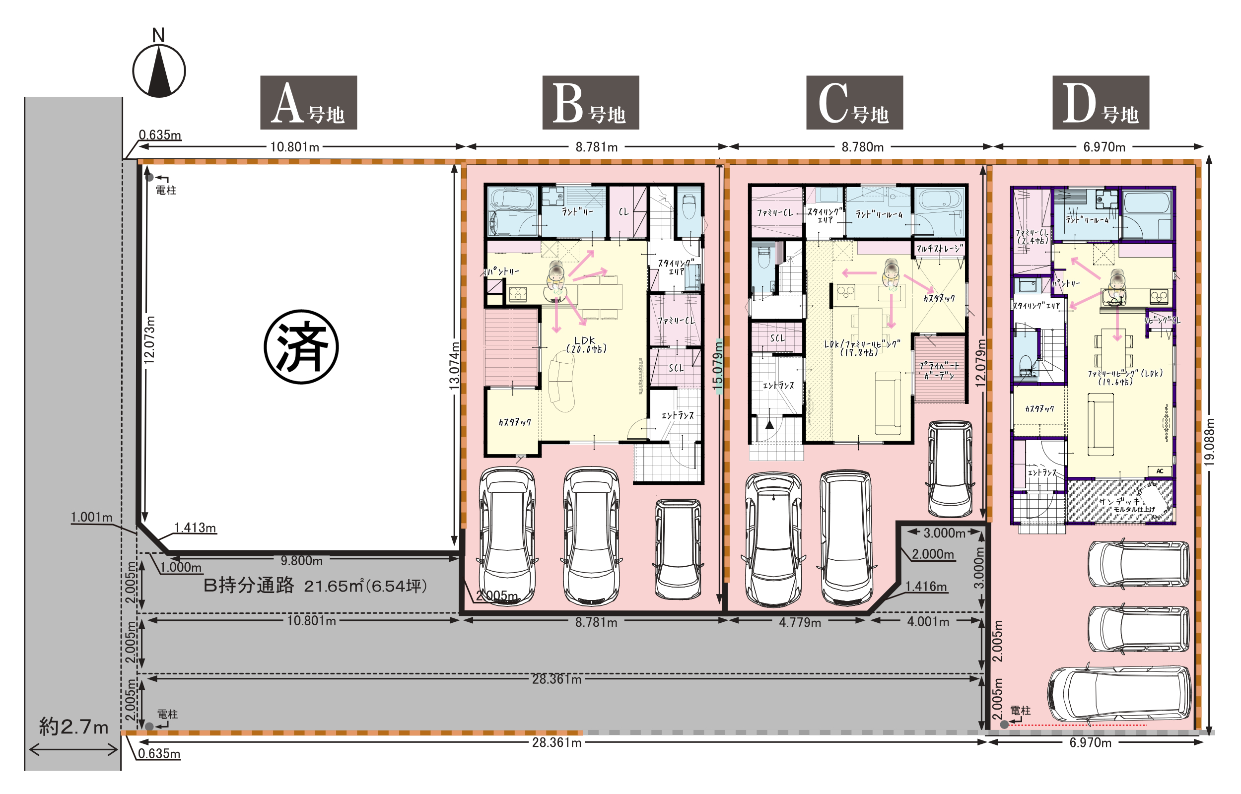 駐車スペース3台確保で、来客時や将来の家族構成の変化にも柔軟に対応。