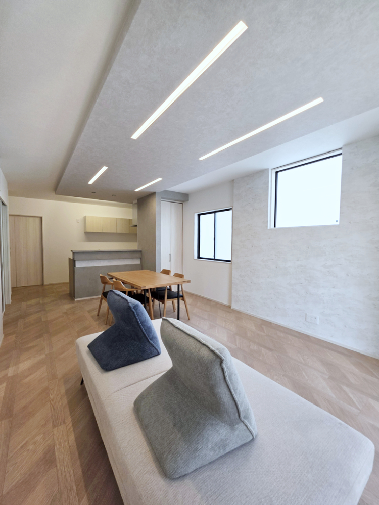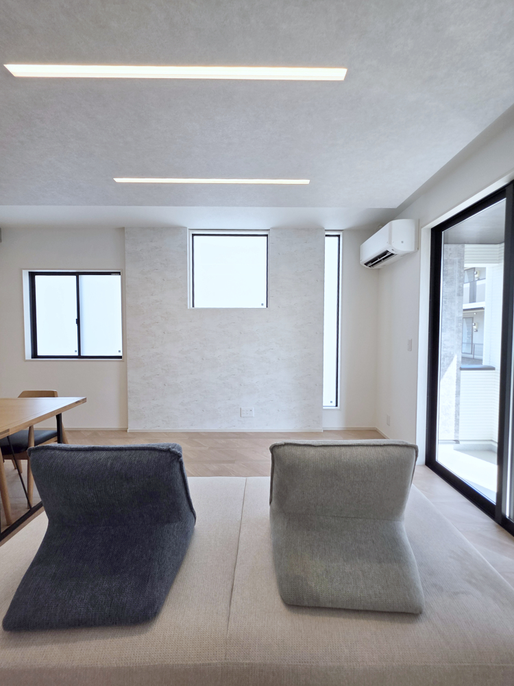 弊社の建売住宅は、リビングエアコン、全室LED照明、ソファ、ダイニングセット、スツールがついています!快適な生活を手軽に始められます。