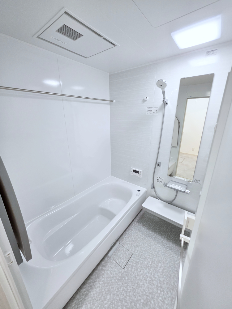 サザナは、お手入れがラクな機能が満載。乾きやすくカビにくい床や断熱材で包まれた魔法びん浴槽、浴室換気暖房乾燥機付きで常に清潔な環境を保ちます。使いやすさにもこだわった設計で、快適なバスタイムを過ごせます。