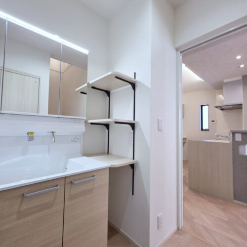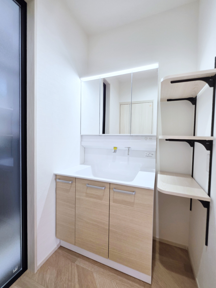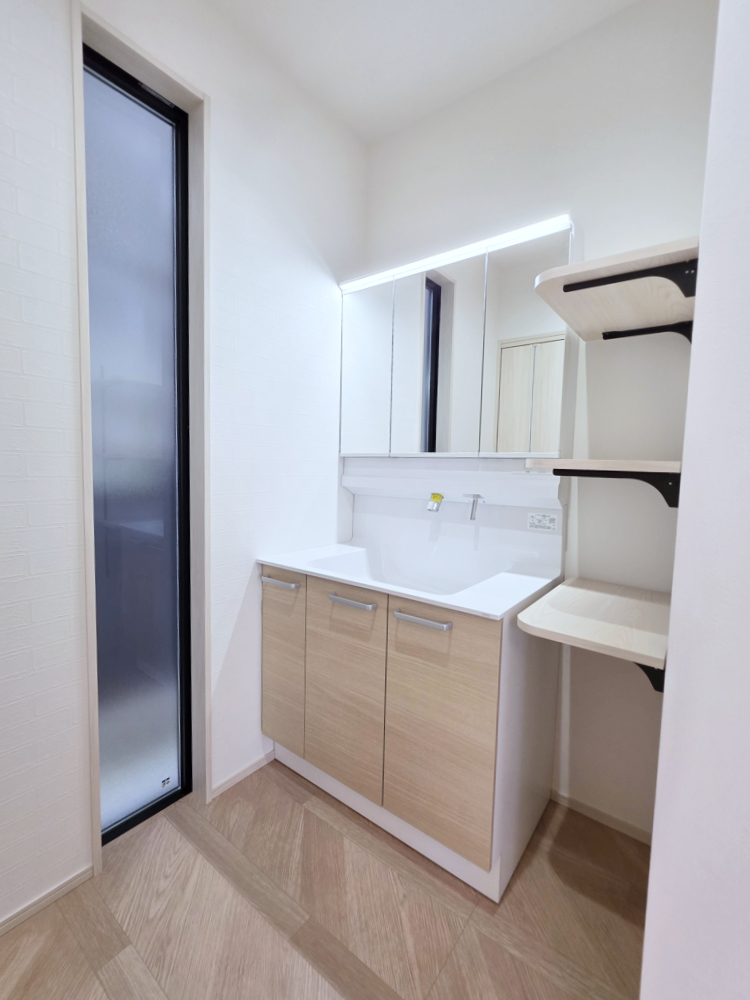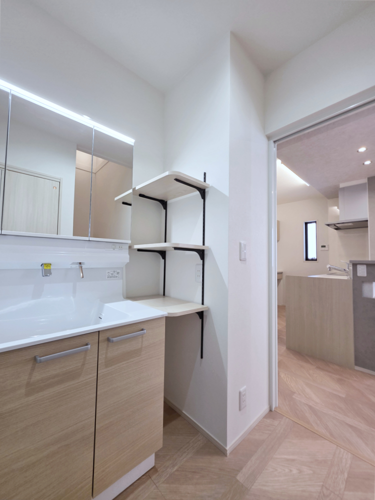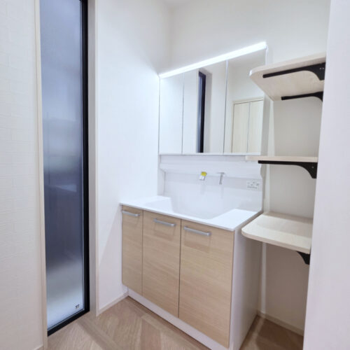 オクターブは、美しさと使いやすさを兼ね備えたデザインが特徴。広い洗面スペースと収納スペース、ワイドなミラーとLED照明、ハンドソープやタオルを置くスペースなど、快適な空間を演出します。