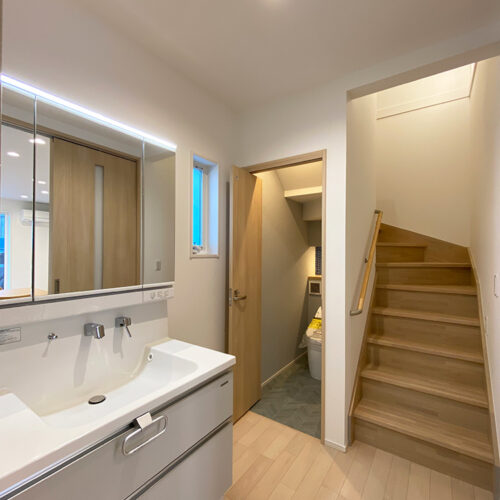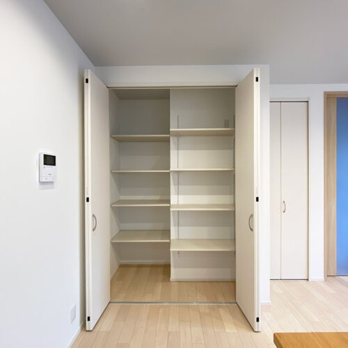 【長期優良住宅】【外構】【太陽光4.28kW】コンパクトな纏まりと空間の広がりを両立させたプラン!冷蔵庫、冷凍庫置き場が考えられた4LDKのオール電化住宅です。