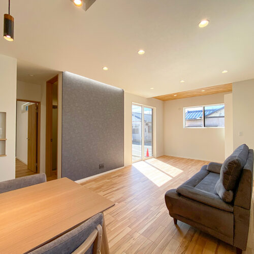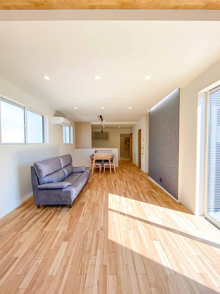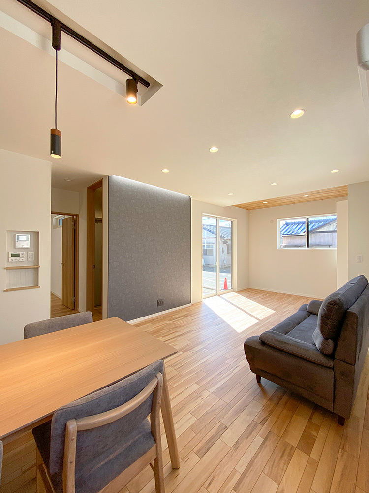 弊社の建売住宅は、リビングエアコン、全室LED照明、ソファ、ダイニングセットがついています!快適な生活を手軽に始められます。