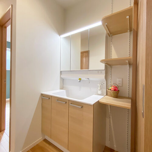 オクターブは、美しさと使いやすさを兼ね備えたデザインが特徴。広い洗面スペースと収納スペース、ワイドなミラーとLED照明、ハンドソープやタオルを置くスペースなど、快適な空間を演出します。