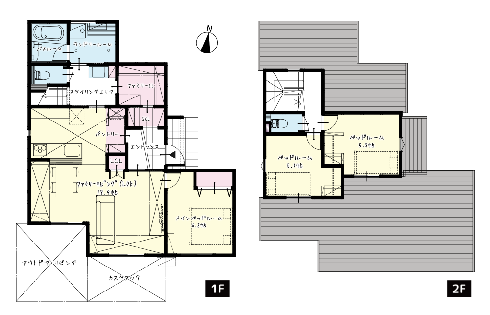 ・SCL、ファミリーCL、パントリー、LCL、ベッドルームのCLと1階の収納を充実させました。
