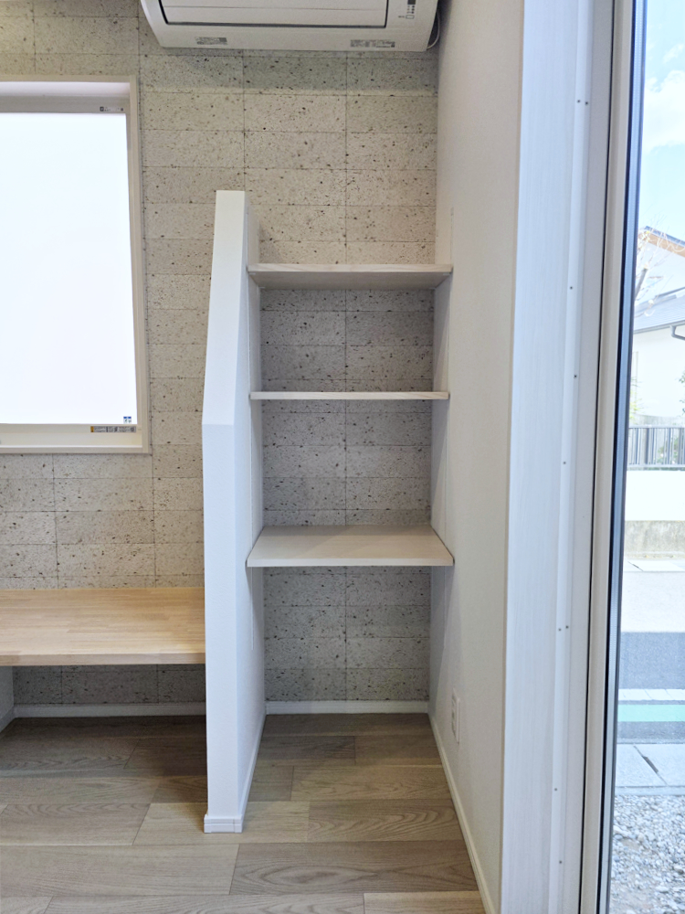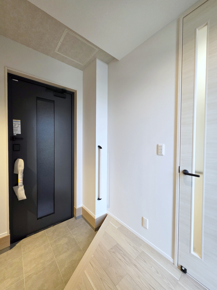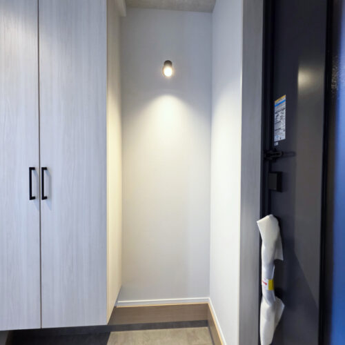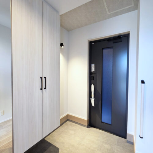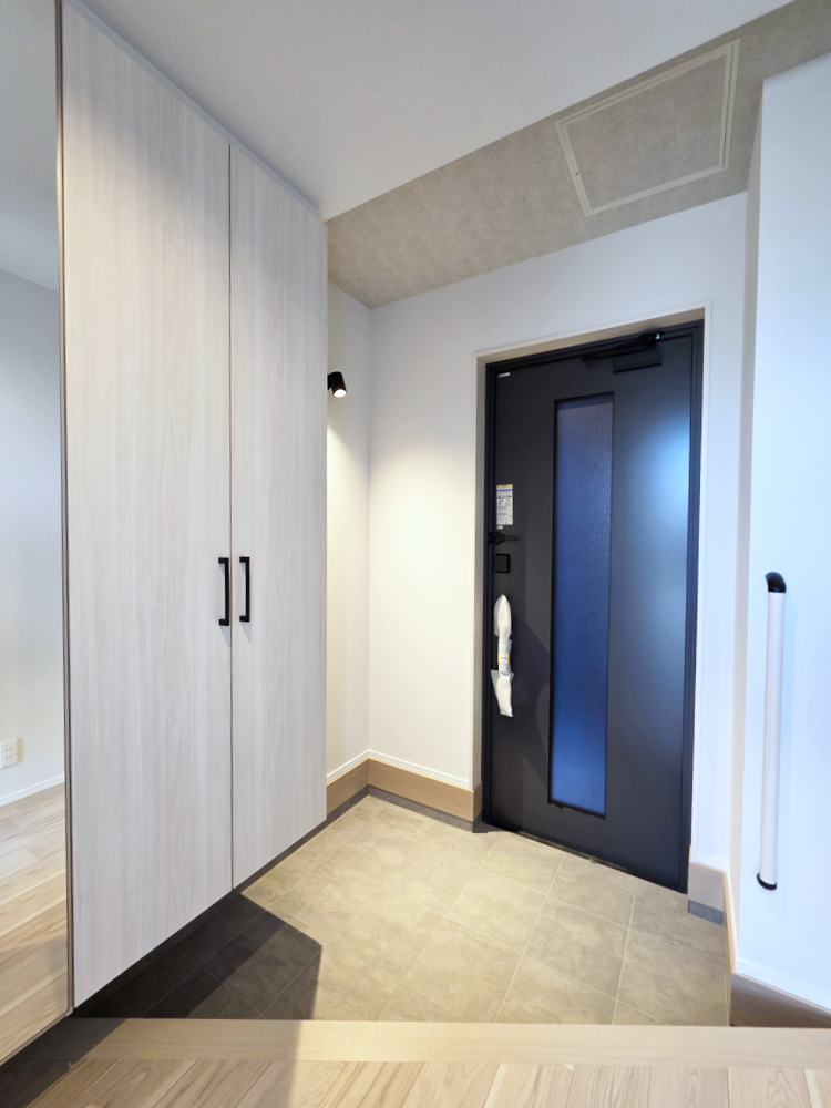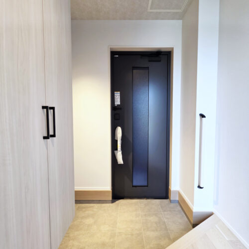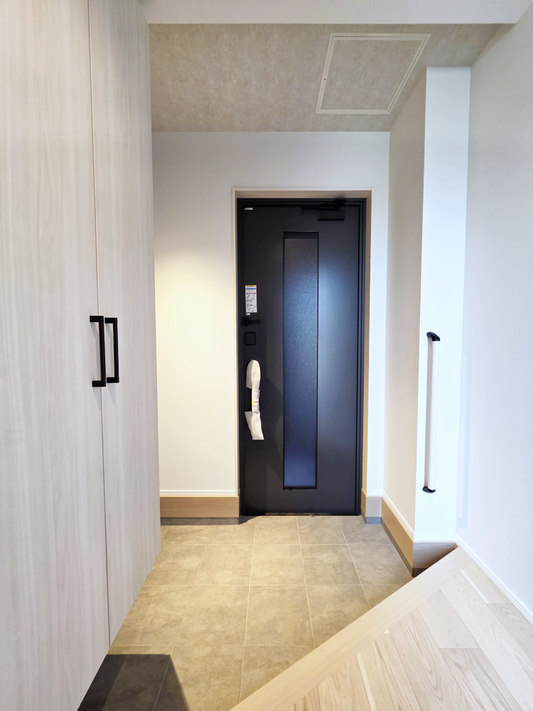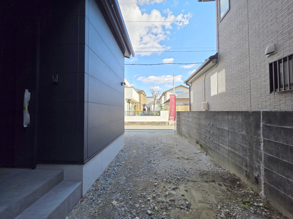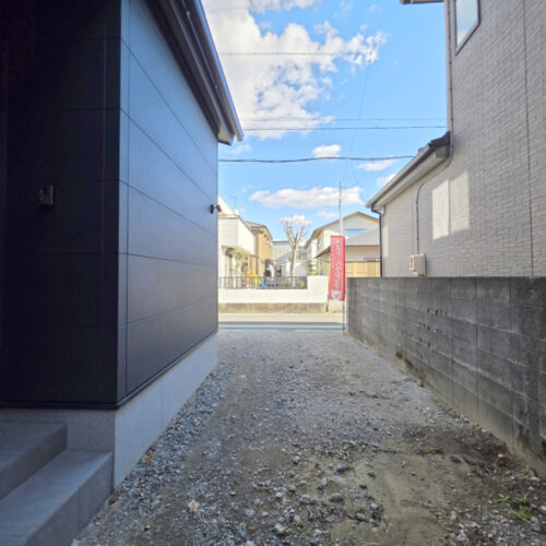 玄関が公道から見えにくい位置にあるため、扉の開閉時も人目を気にせず、プライバシーが確保されて安心です。