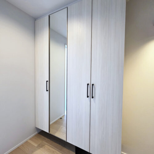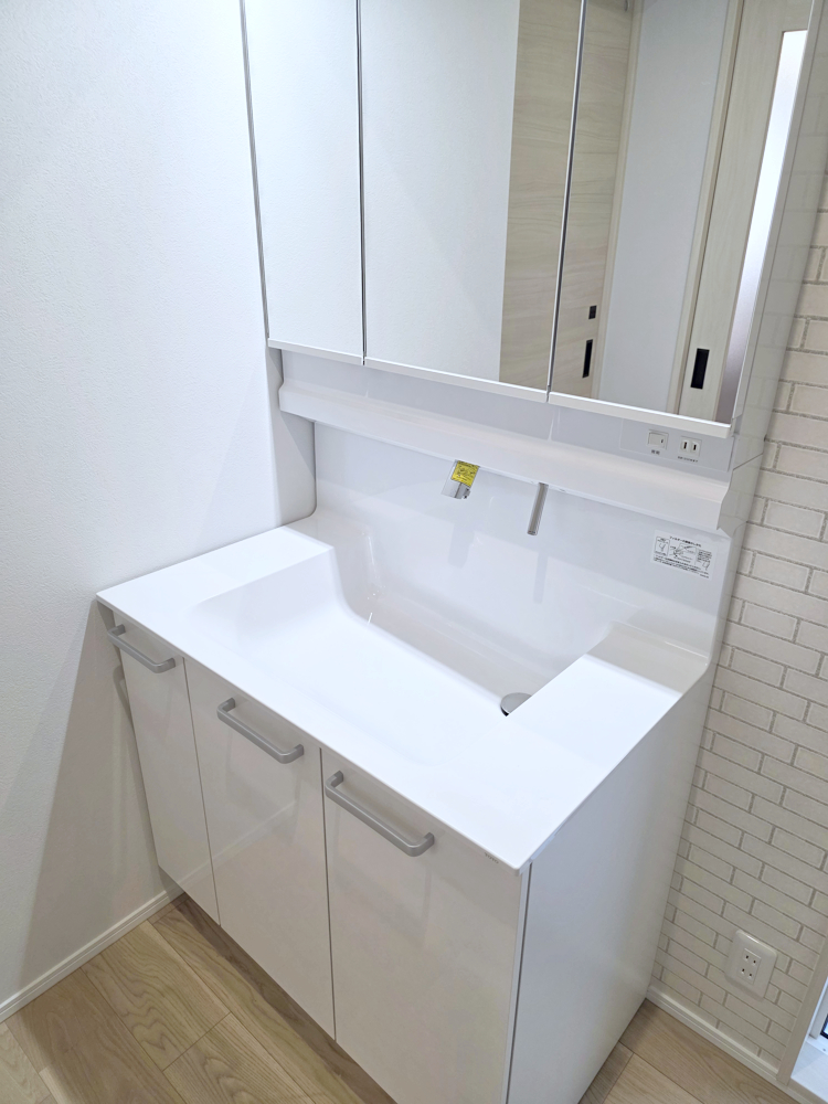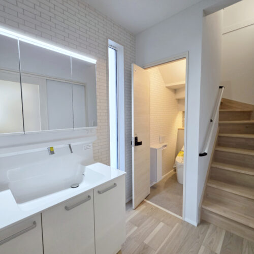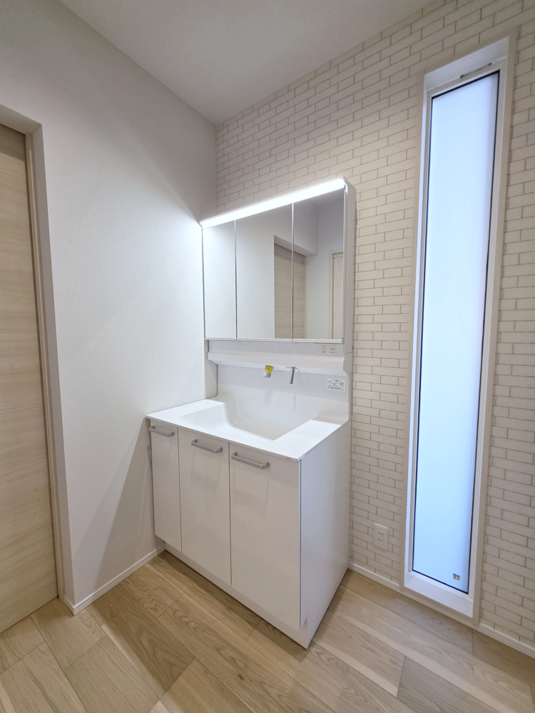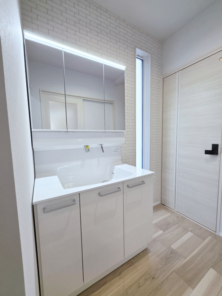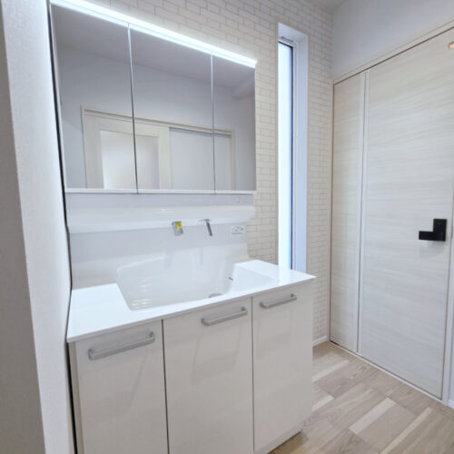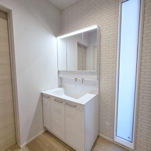 脱衣室から独立した洗面化粧台は、ご家族の入浴中に気兼ねなく利用できるため、朝の身支度をよりスムーズに行えます。