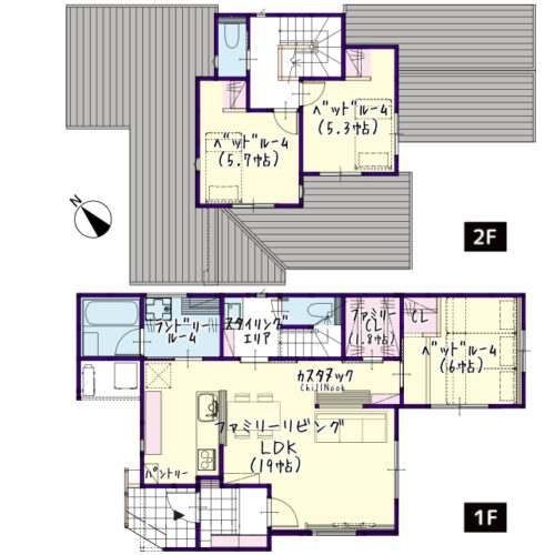 LDKに面したカスタヌックは自由に使える!お子様の勉強空間にしてみたり、趣味の空間にしたりできます。ほどよいゾーニングになっているのでコミュニケーションを取りながらの空間にできます。