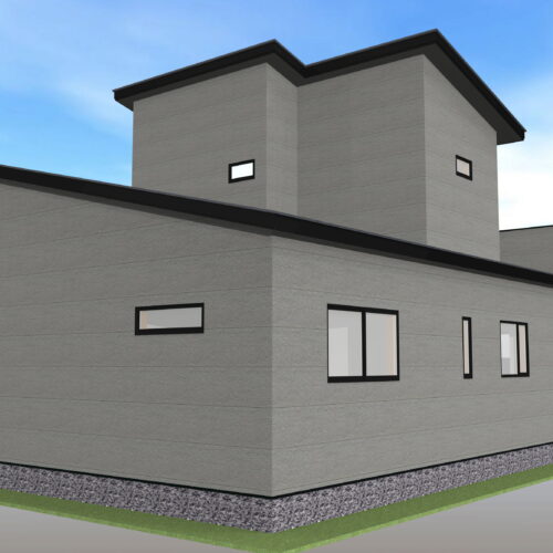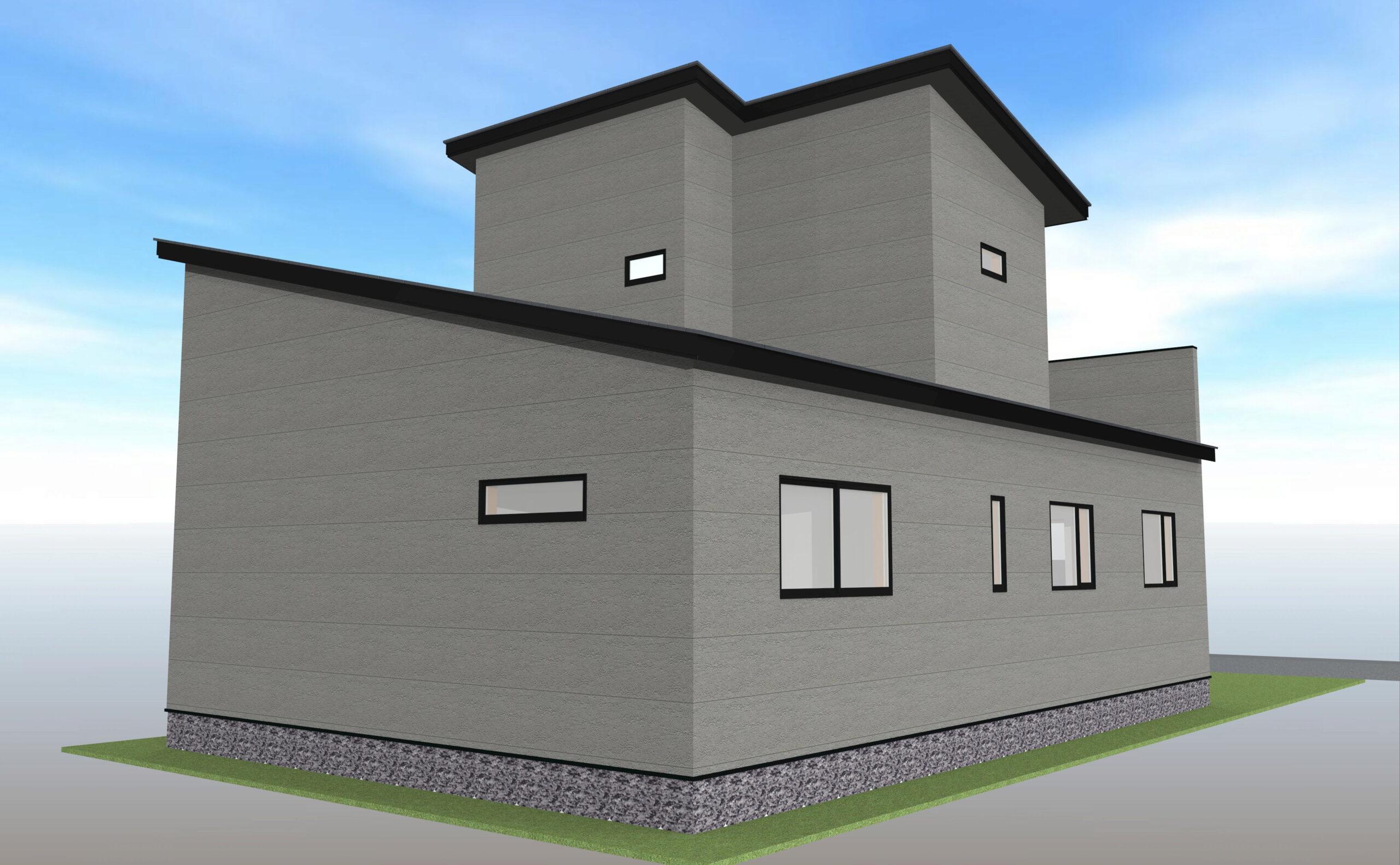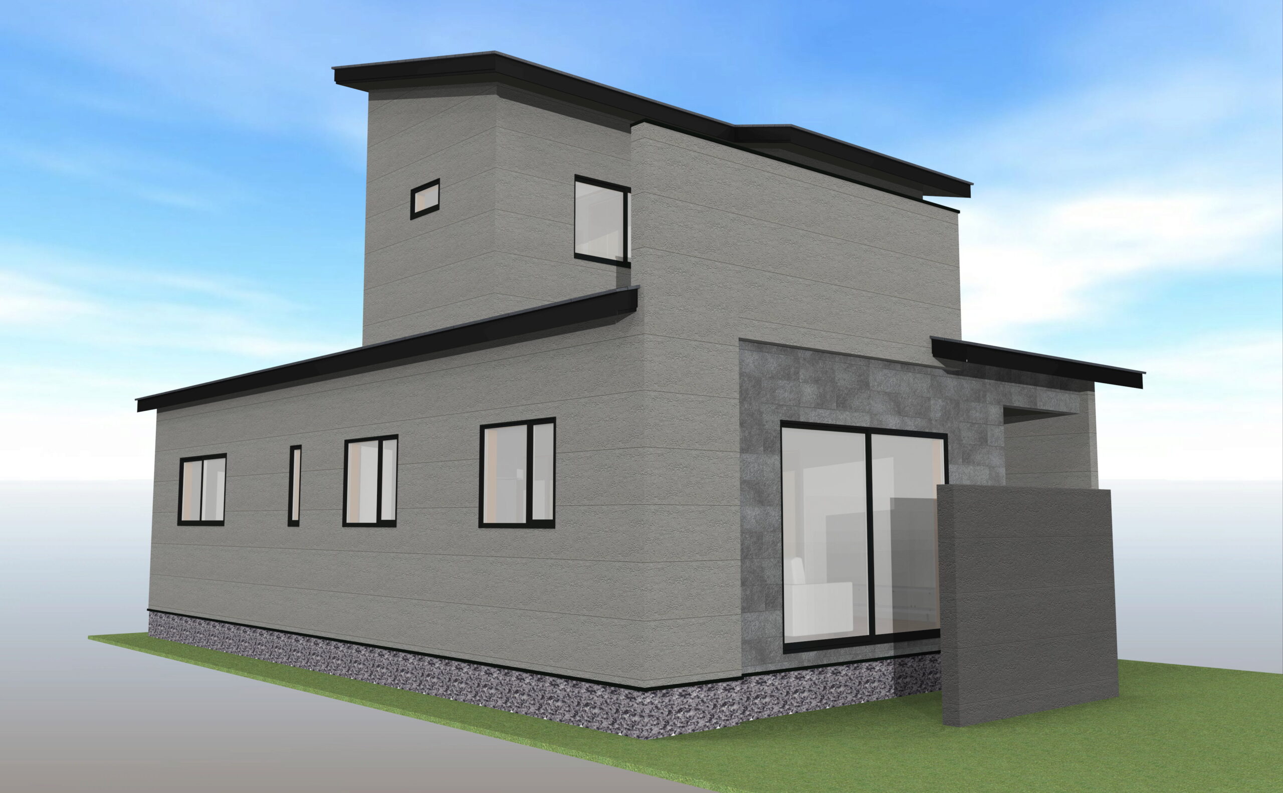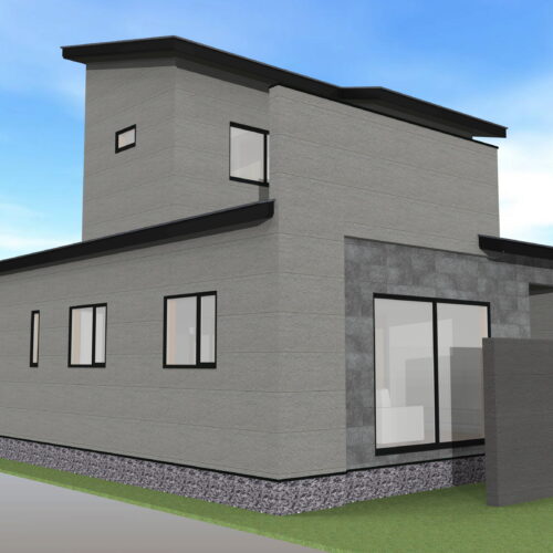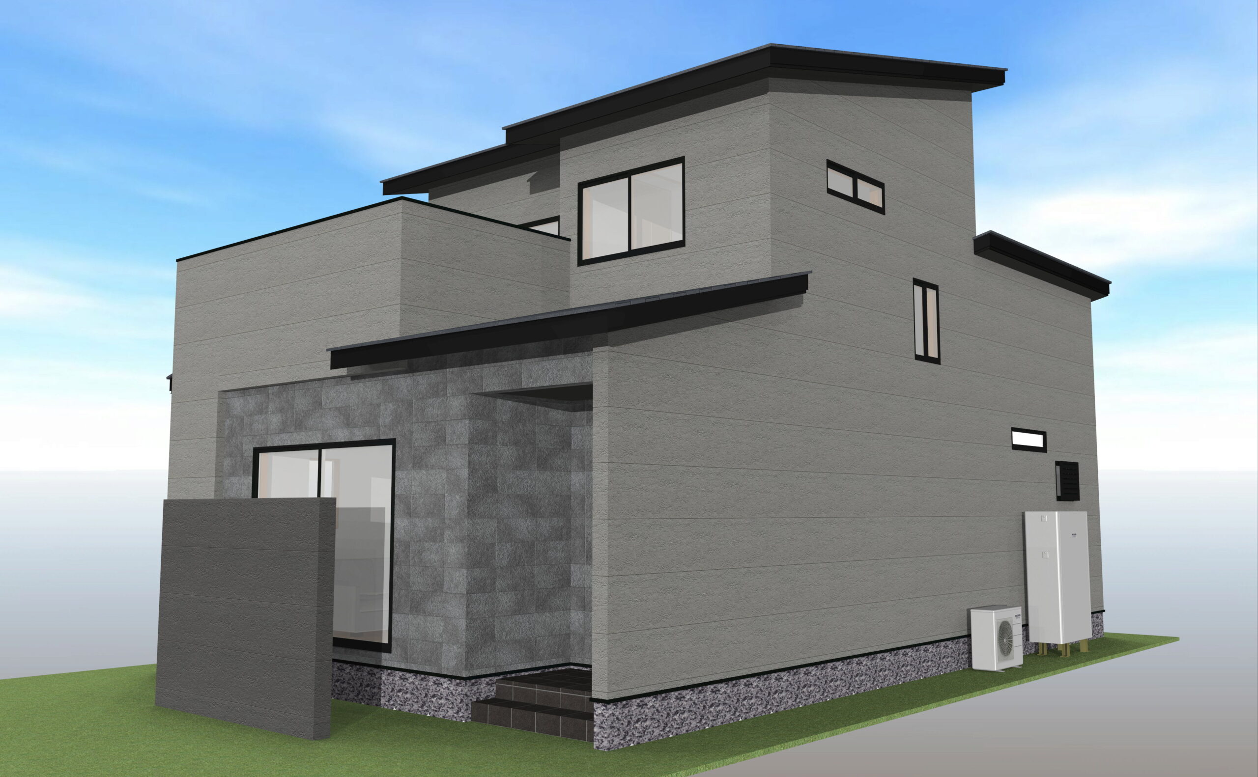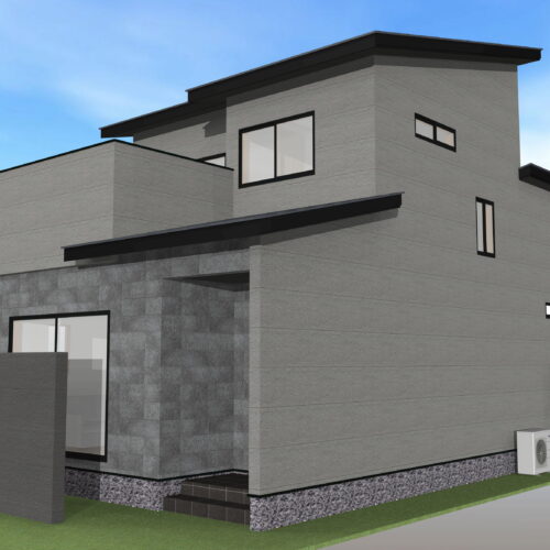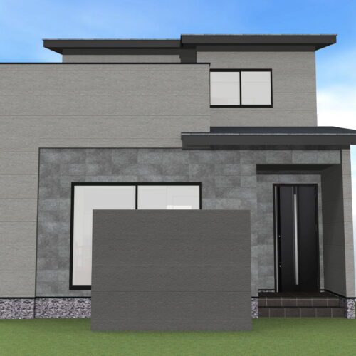 グレーの濃淡を重ねた落ち着きある外観デザイン。