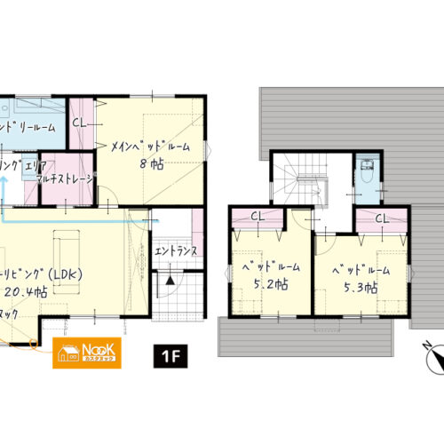 【長期優良住宅】【外構】【太陽光5.16kW】お家の中心にマルチストレージを配置した収納豊富で平屋風の暮らしができる3LDKの住まい。