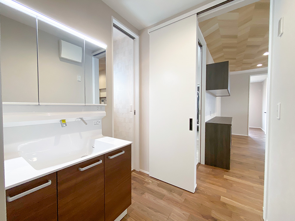 オクターブは、美しさと使いやすさを兼ね備えたデザインが特徴。広い洗面スペースと収納スペース、ワイドなミラーとLED照明、ハンドソープやタオルを置くスペースなど、快適な空間を演出します。