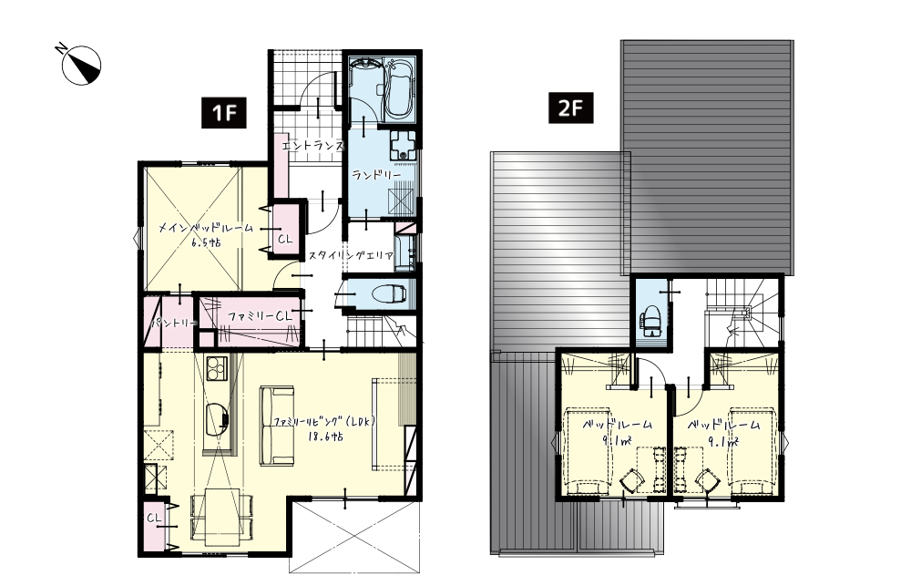 1階のファミリークローゼットはもちろん、リビングや寝室などの各部屋に収納スペースを設けました。
