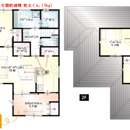 【長期優良住宅】【外構】【太陽光4.87kW】【乾太くん】1階にベッドルームと庭に繋がるサンルームを持ち大型収納を備えた4LDKの充実プラン!