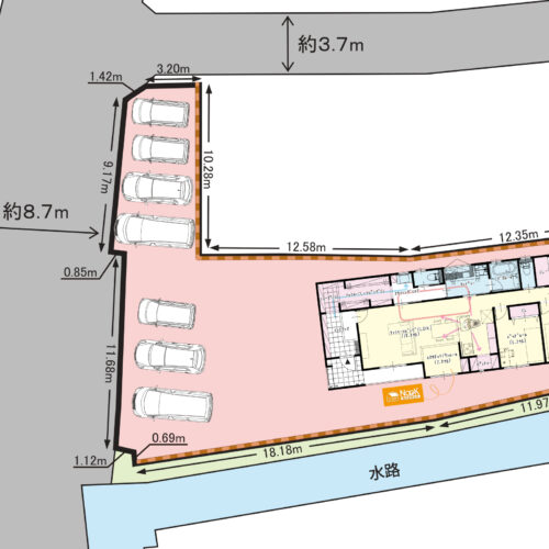 継ぎ目のない頑丈な一体ベタ基礎。基礎全体で建物の重さを支えるため、地震や台風などの衝撃を効果的に地盤へ逃がすことができます。また、湿気やカビの発生を防止することができ、断熱効果にも優れています。