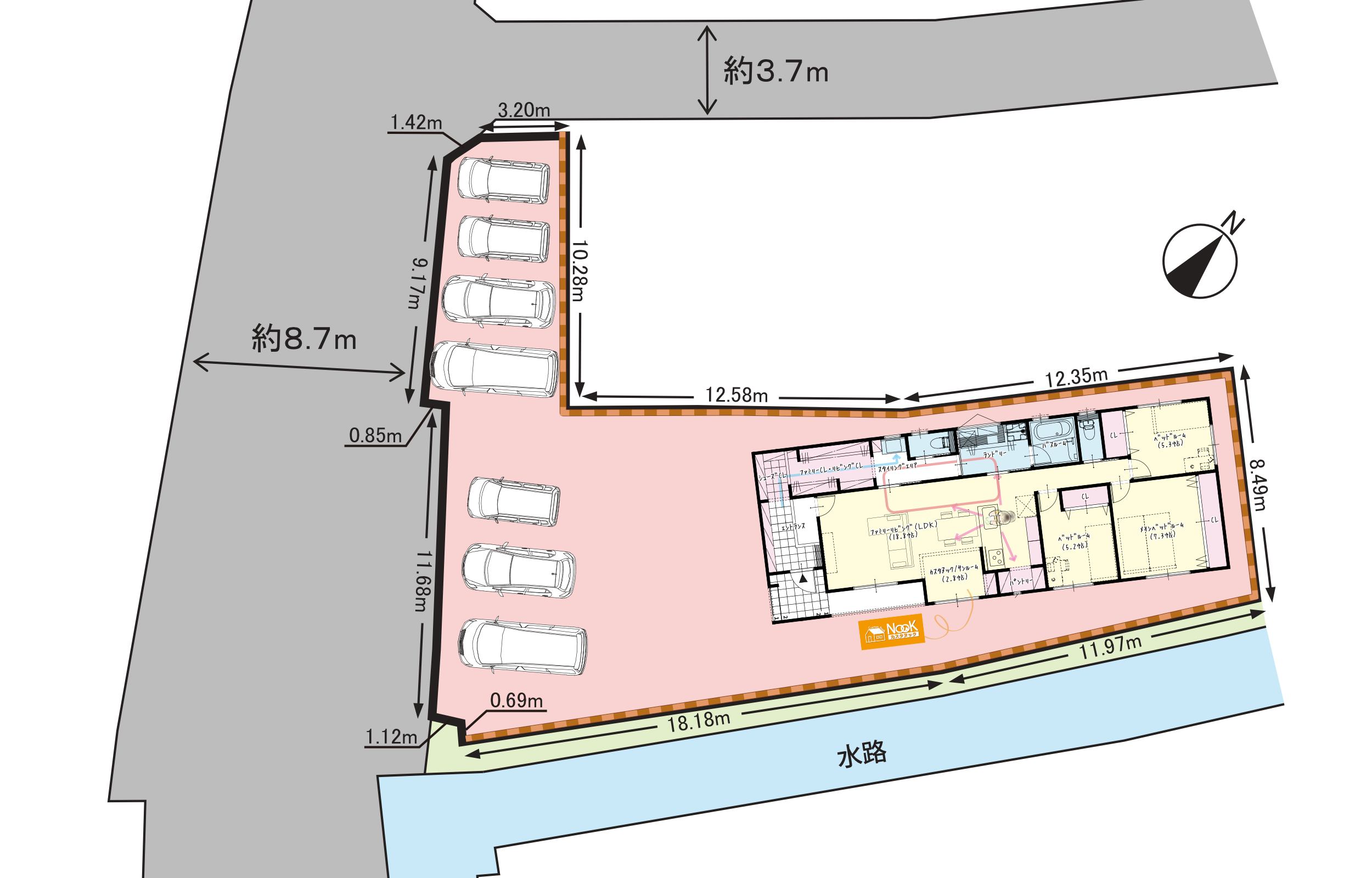剛床構造は、床に剛性を持たせることで耐震性を高める構造です。地震による床の歪みを最小限に抑え、建物全体の歪みを均等に分散し、建物の倒壊を防ぎます。一般の在来工法に比べて約3倍の剛性があります。