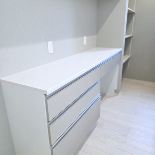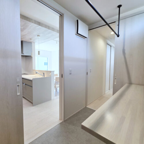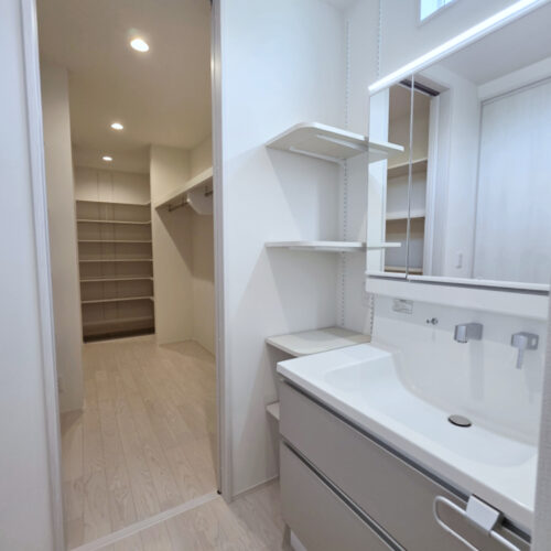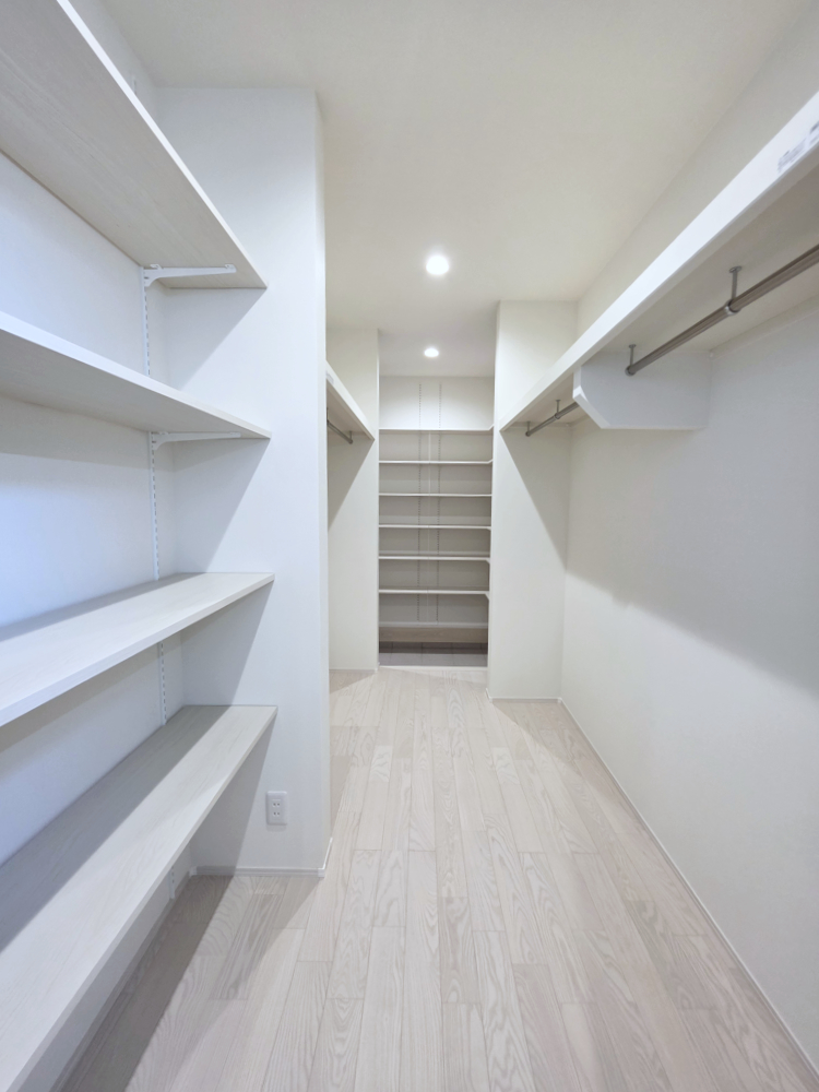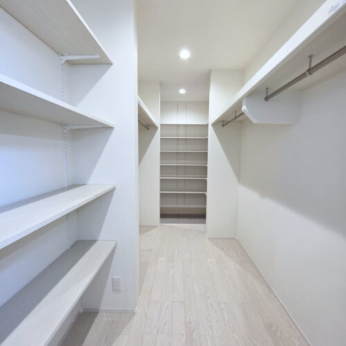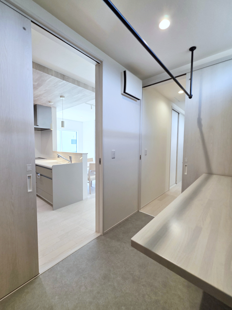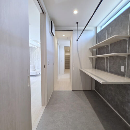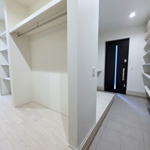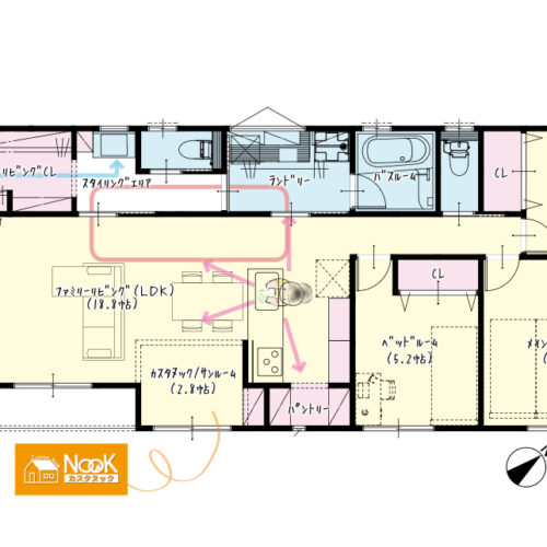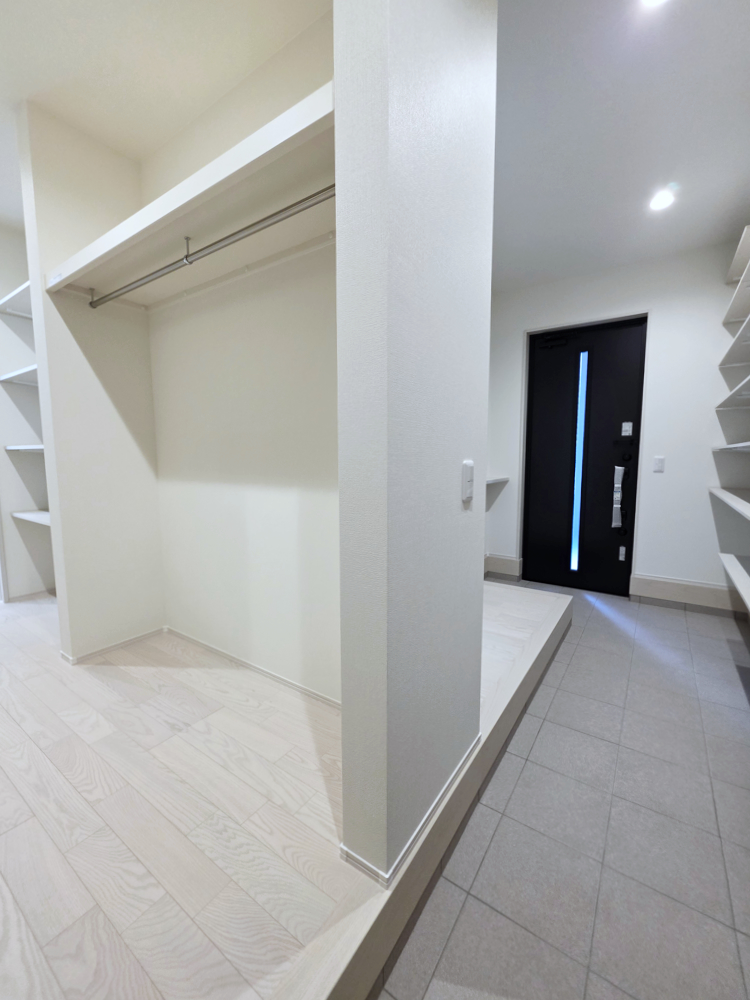 室内に入ってからもエントランスからリビングへ行く動線とエントランスを通り過ぎ、シューズCL→ファミリーCL→スタイリングエリアへ行く動線など行き止まりが無くストレスフリーです。
