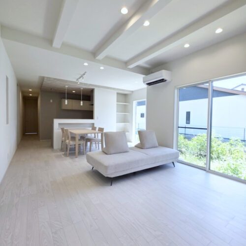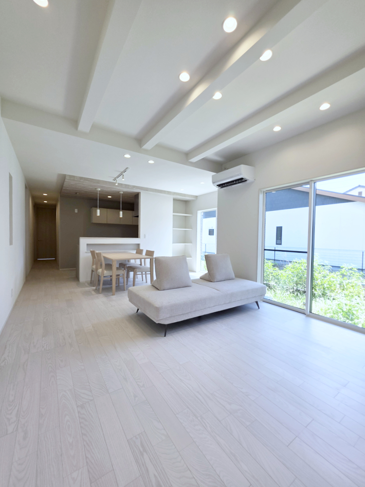 弊社の建売住宅は、リビングエアコン、全室LED照明、ソファ、ダイニングセット、スツールがついています!快適な生活を手軽に始められます。