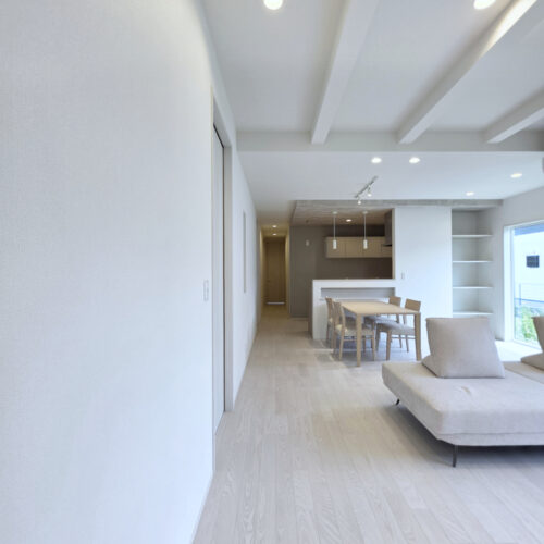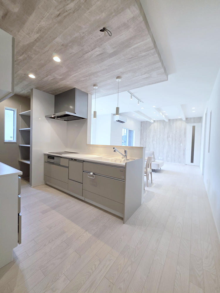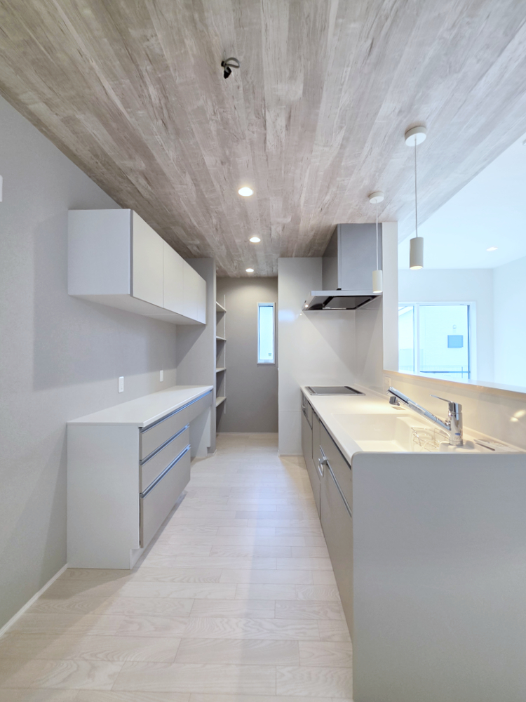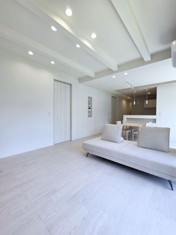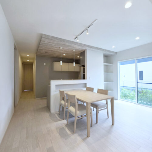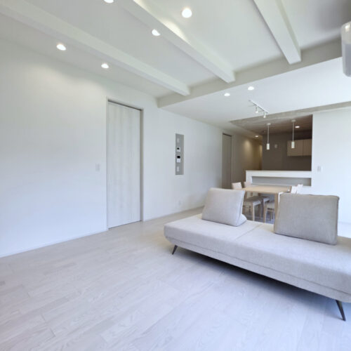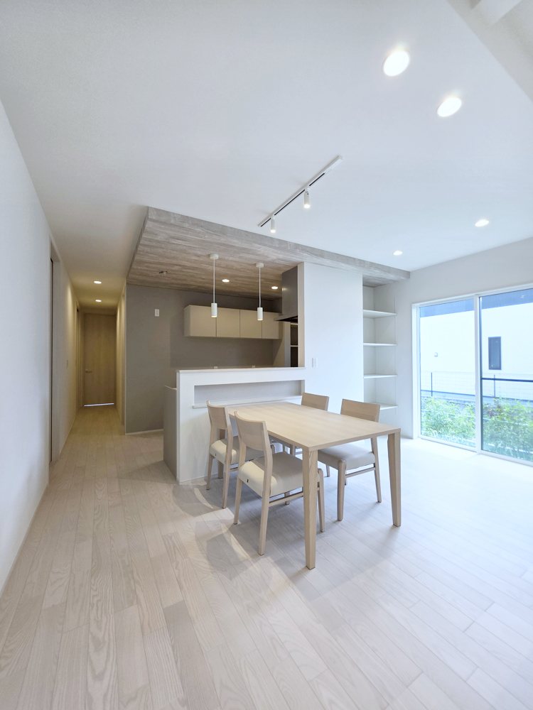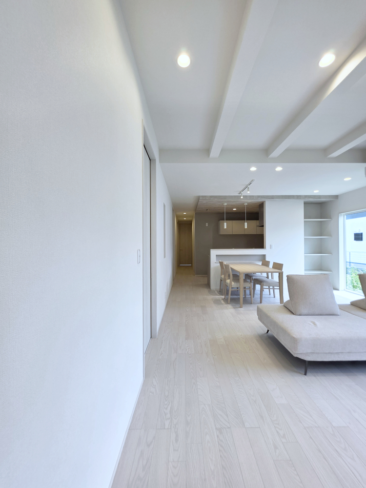 イクタの抗ウイルスフローリング採用。マットな風合いのラスティック塗装に、消臭、ウィルス、抗菌、VOC低減効果をプラスした、安心、安全、健康かつ、天然木ツキ板のフローリングです。