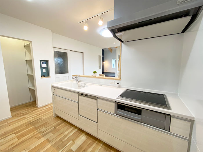 シューズCLを通って洗面へ向かえる自然と靴の片付けが身につく手洗い動線のあるお家になります。1階にはサンルームや家事室、書斎としても使える3.8帖のフリールームがあるのもポイントです。