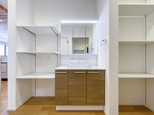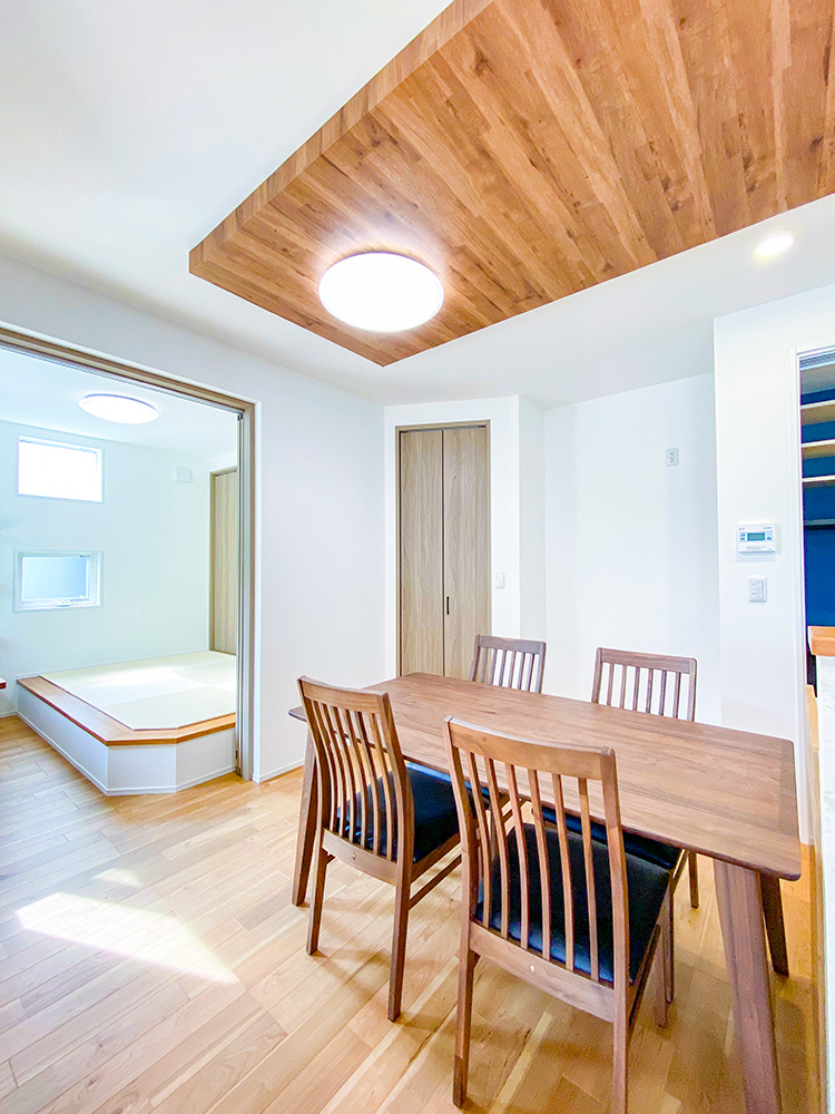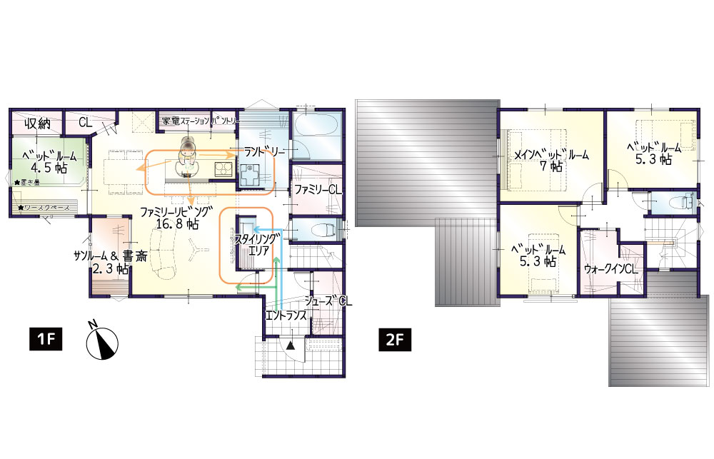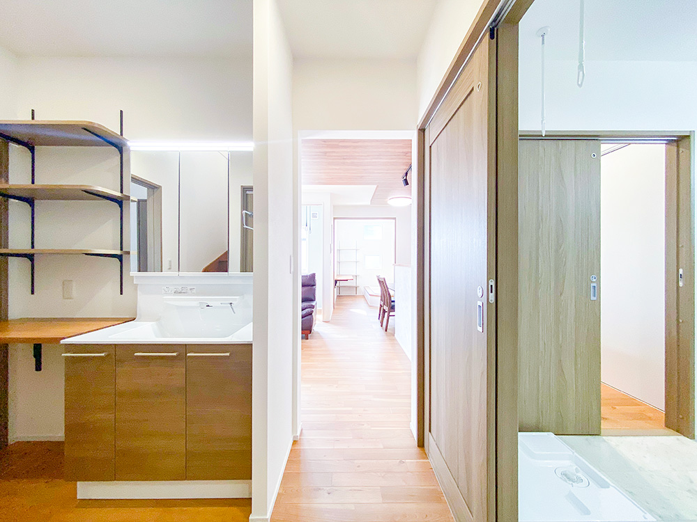 家事動線、帰宅・生活動線を兼ね備えているのはもちろん、和室になる洋室や書斎になるサンルームなど住まい方に合わせてフレキシブルに変化するお家になります。