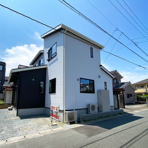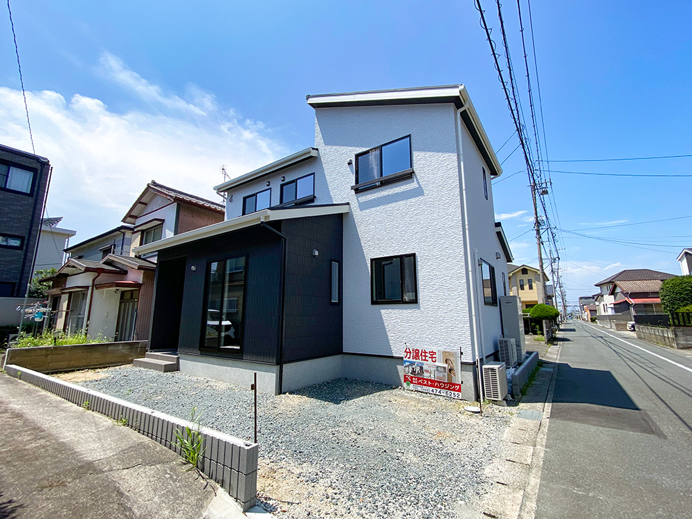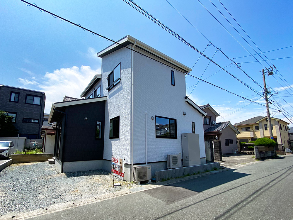 【外構付き】★浜松駅まで車で約6分の好立地。スーパーやコンビニ、ドラッグストアが徒歩や自転車圏内に揃い、車1台でも暮らしやすい住環境。 共働き家族に嬉しい3帖のサンルームのある3LDKの住まい。