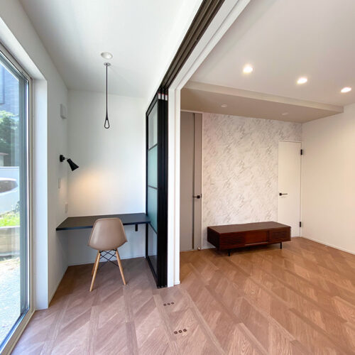 横溝加工することで、1枚板を縦継ぎした天然木に見えるような仕上がりを実現。住まいの床を衛生的に保つことができる抗ウイルス仕様フローリングです。