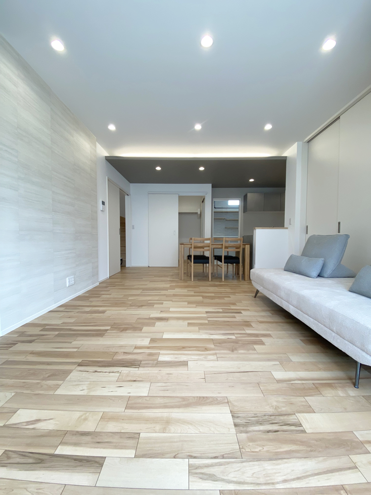 イクタの抗ウイルスフローリング採用。マットな風合いのラスティック塗装に、消臭、ウィルス、抗菌、VOC低減効果をプラスした、安心、安全、健康かつ、天然木ツキ板のフローリングです。