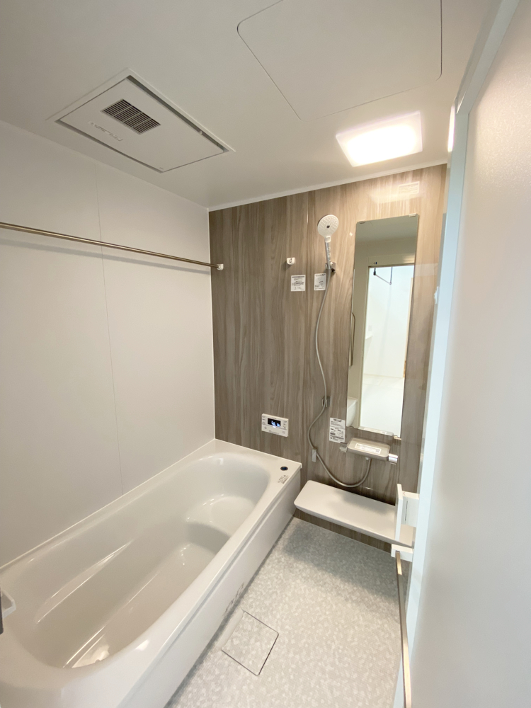サザナは、お手入れがラクな機能が満載。乾きやすくカビにくい床や断熱材で包まれた魔法びん浴槽、浴室換気暖房乾燥機付きで常に清潔な環境を保ちます。使いやすさにもこだわった設計で、快適なバスタイムを過ごせます。